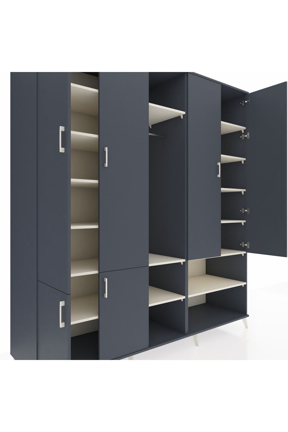 Kronos Dolap 15 Raflı 5 Kapaklı Tek Askılı 220x59x243 Antrasit-Antrasit/Aytaşı