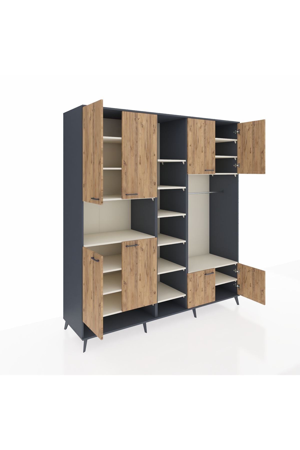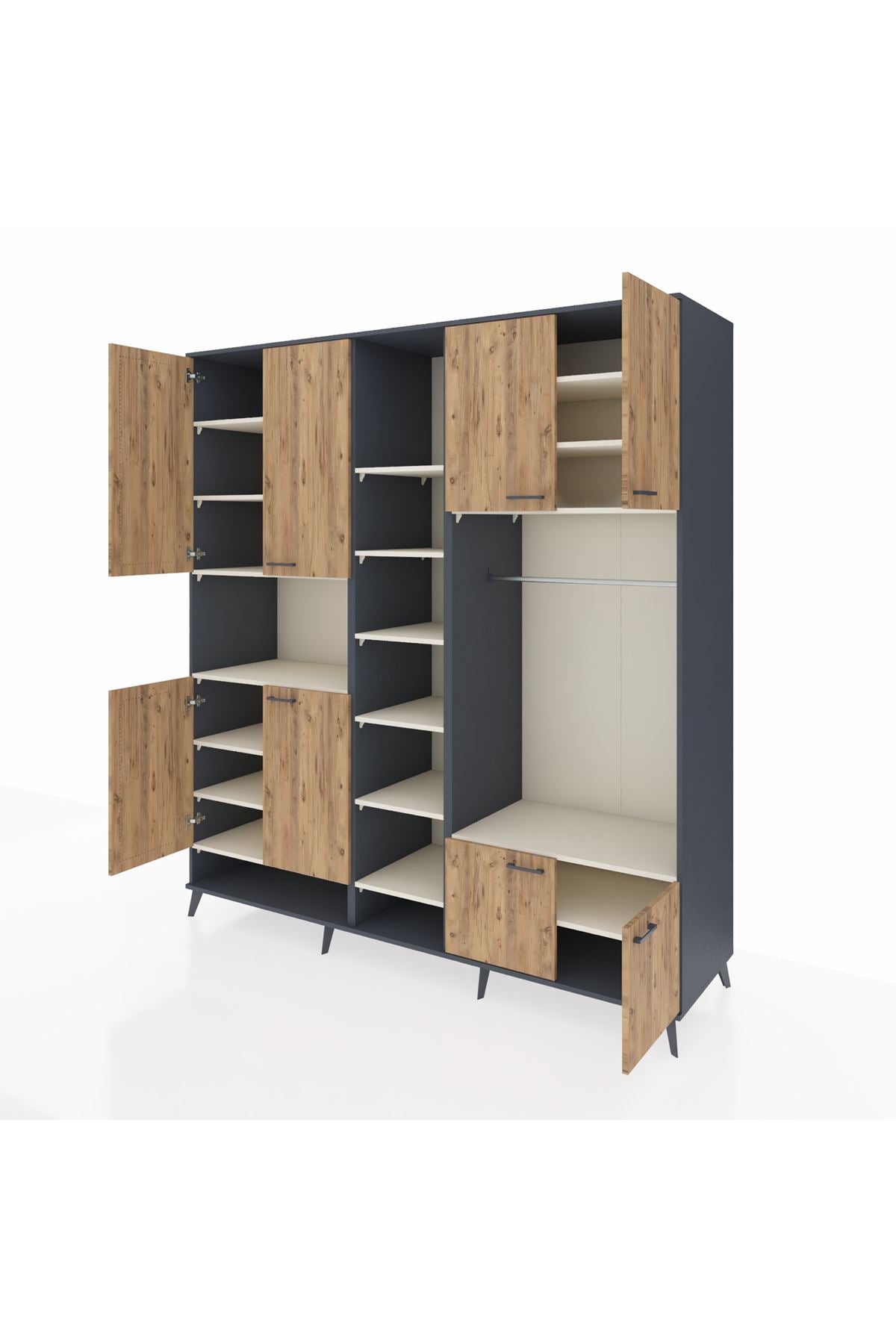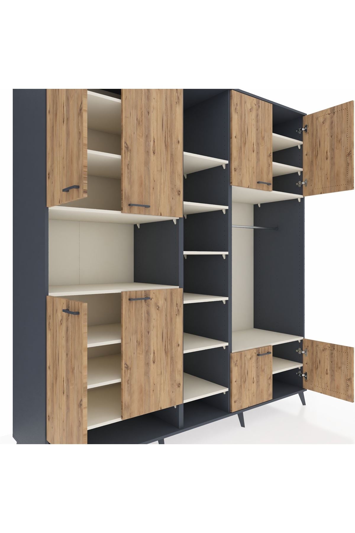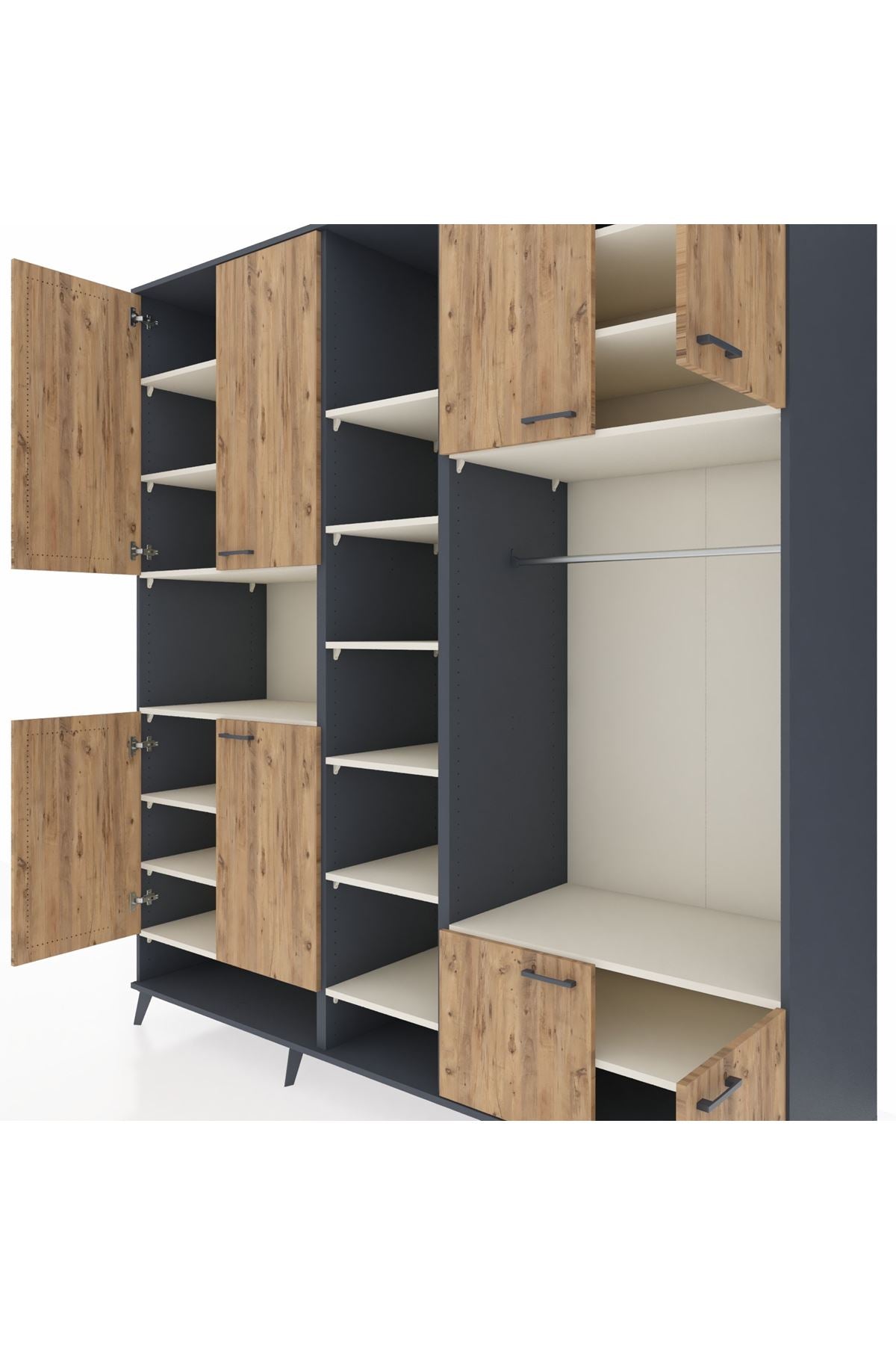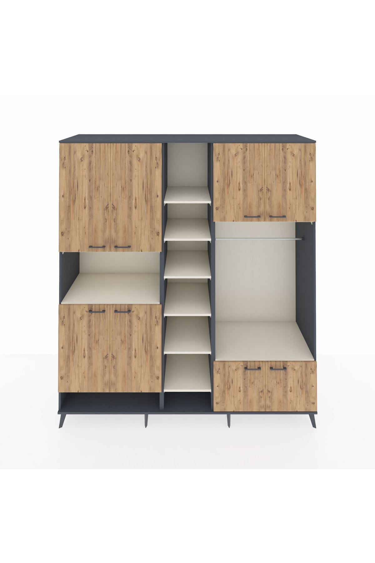Kronos Dolap 18 Raflı 8 Kapaklı Tek Askılı 220x59x243 Antrasit-Çam/Aytaşı