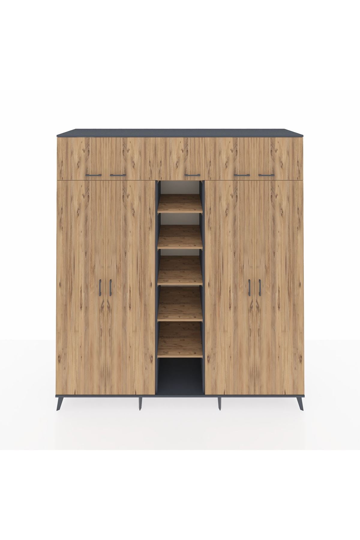 Kronos Dolap 18 Raflı 9 Kapaklı 220x59x243 Antrasit-Çam/Çam