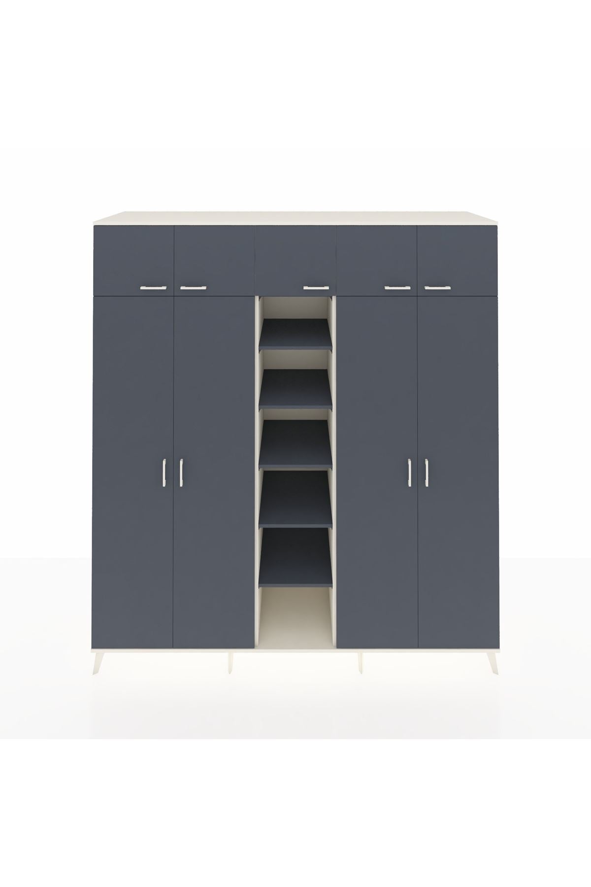 Kronos Dolap 18 Raflı 9 Kapaklı 220x59x243 Aytaşı-Antrasit/Antrasit