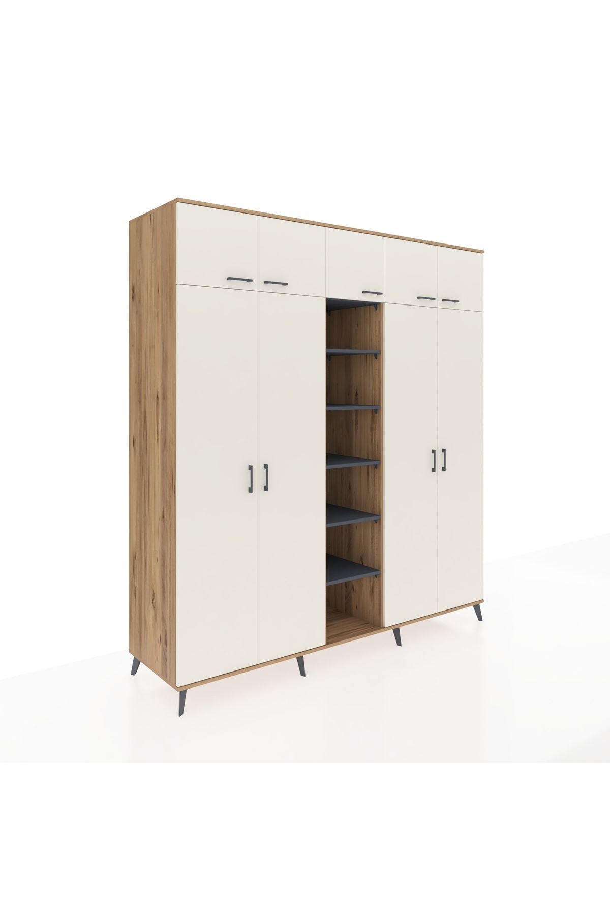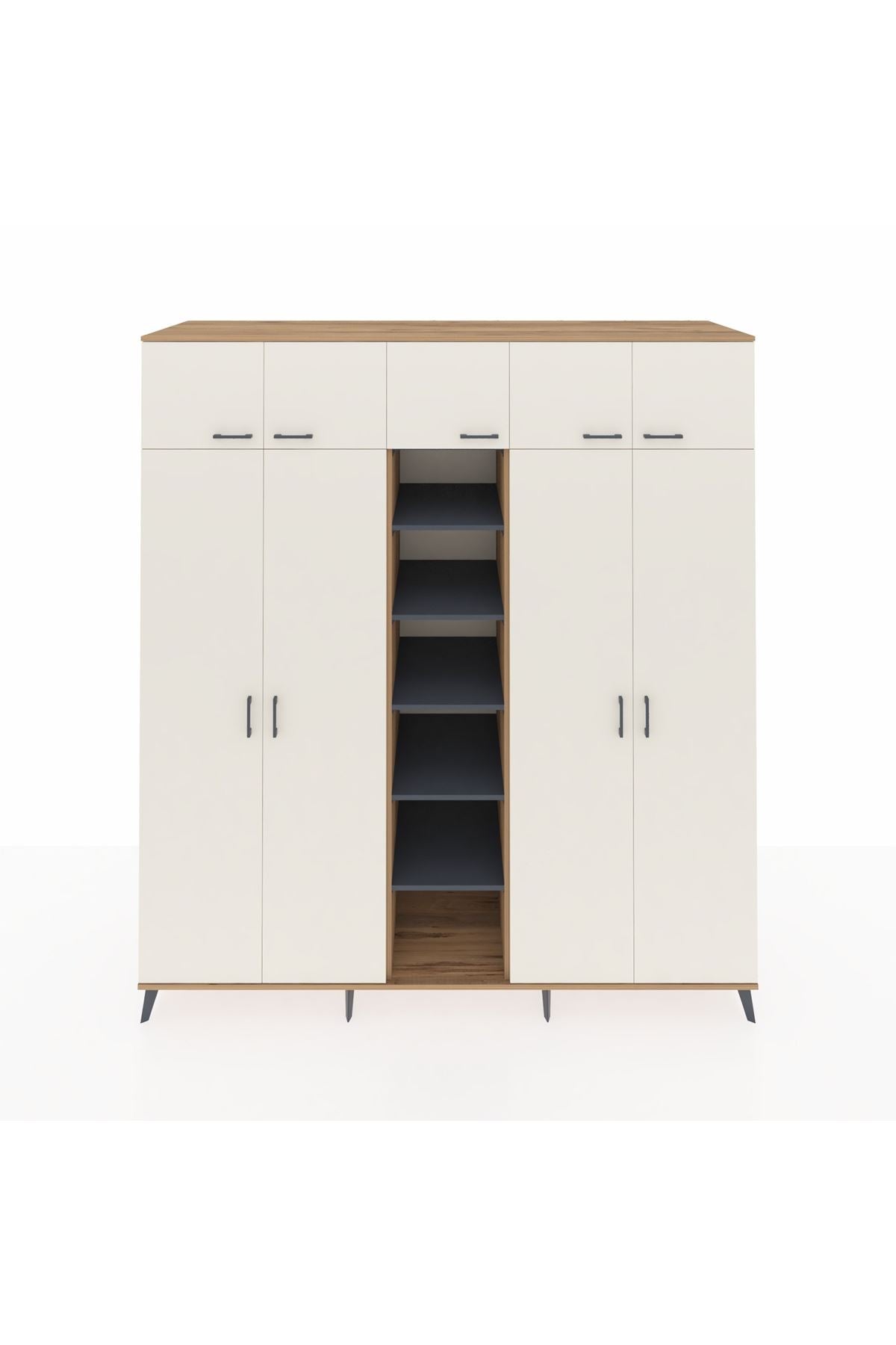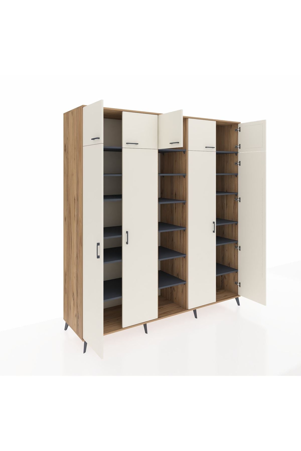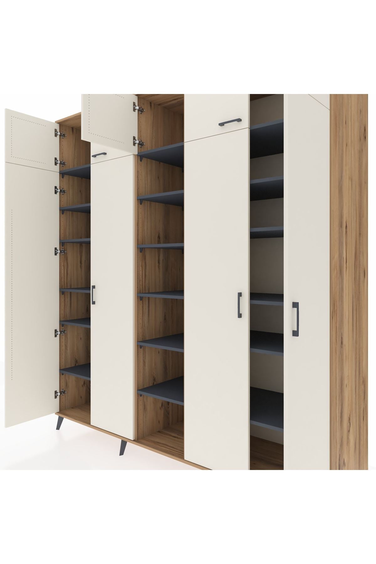 Kronos Dolap 18 Raflı 9 Kapaklı 220x59x243 Çam-Aytaşı/Antrasit