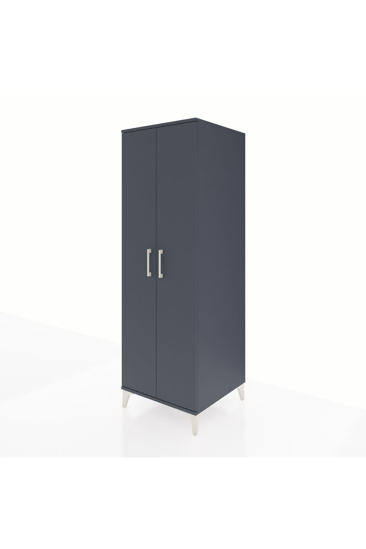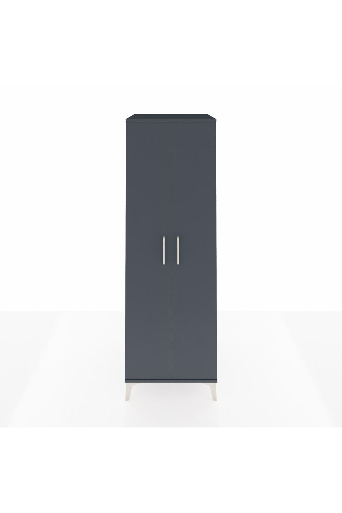 Kronos Dolap 2 Raflı 2 Kapaklı Tek Askılı 60x59x182 Antrasit-Antrasit