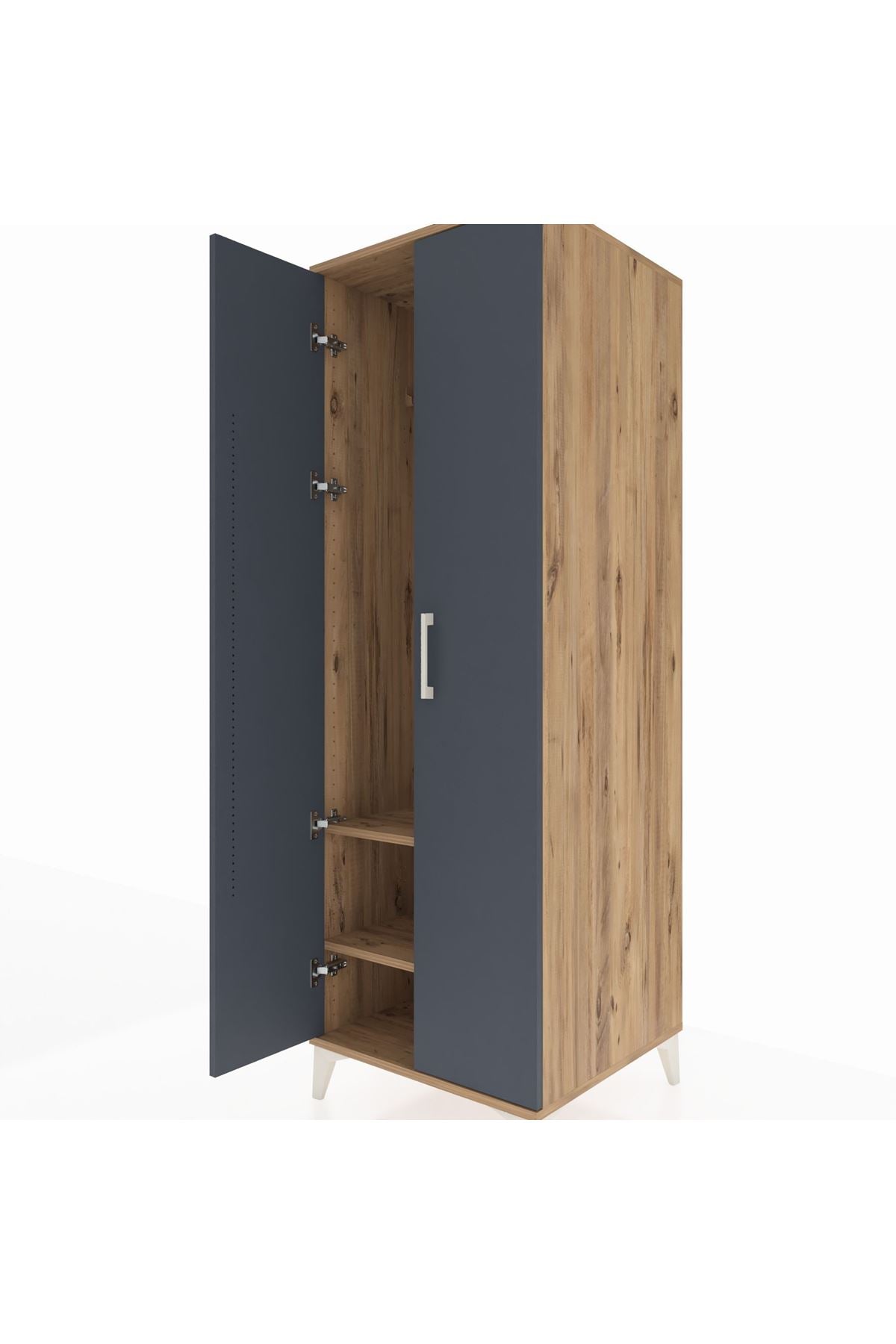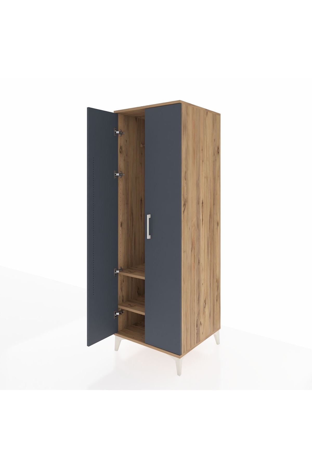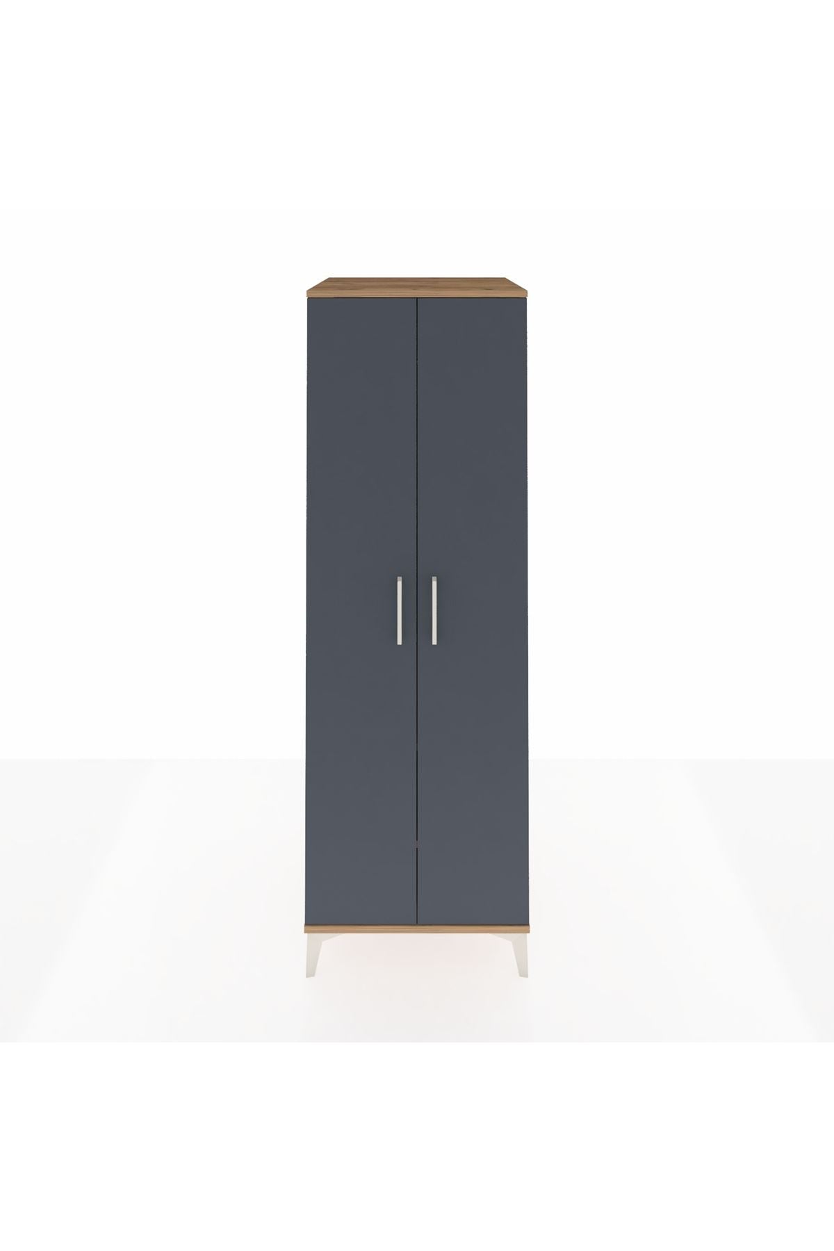 Kronos Dolap 2 Raflı 2 Kapaklı Tek Askılı 60x59x182 Çam-Antrasit