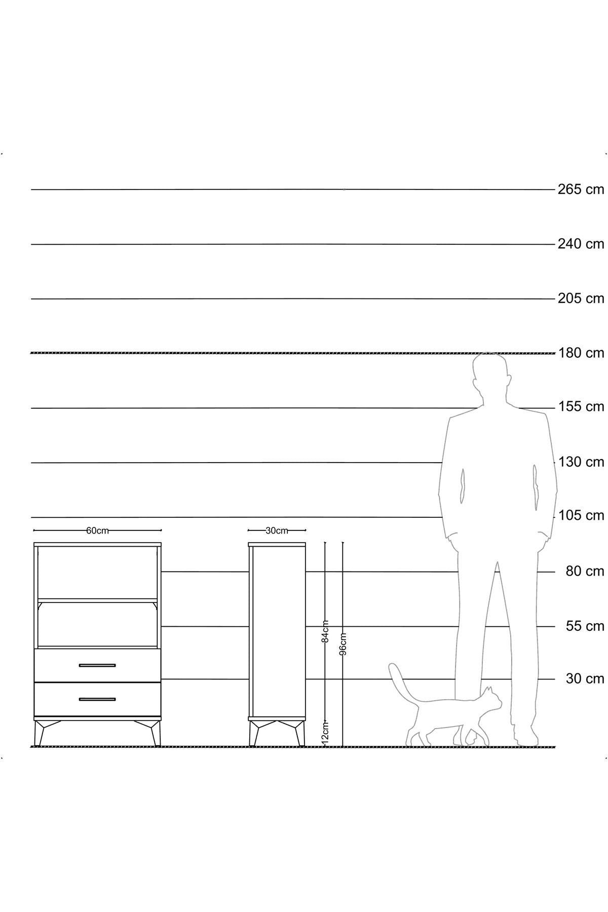 Arges Komodin 2 Raflı 2 Çekmeceli 60x30x96 Antrasit-Çam