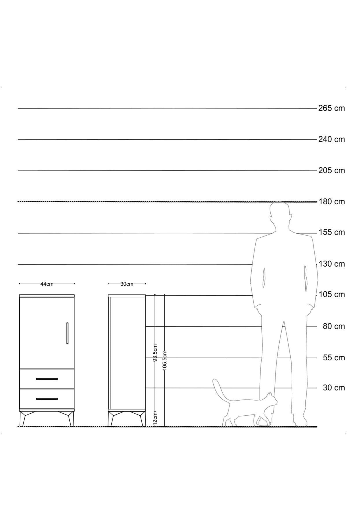 Arges Komodin 2 Raflı 2 Çekmeceli Tek Kapaklı 44x30x106 Çam-Çam