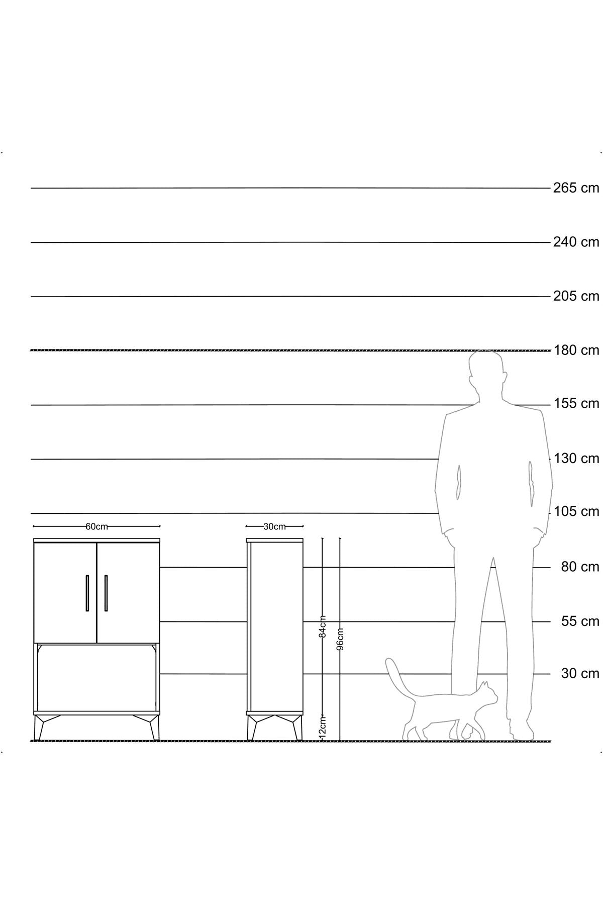 Arges Komodin 2 Raflı 2 Kapaklı 60x30x96 Antrasit-Çam
