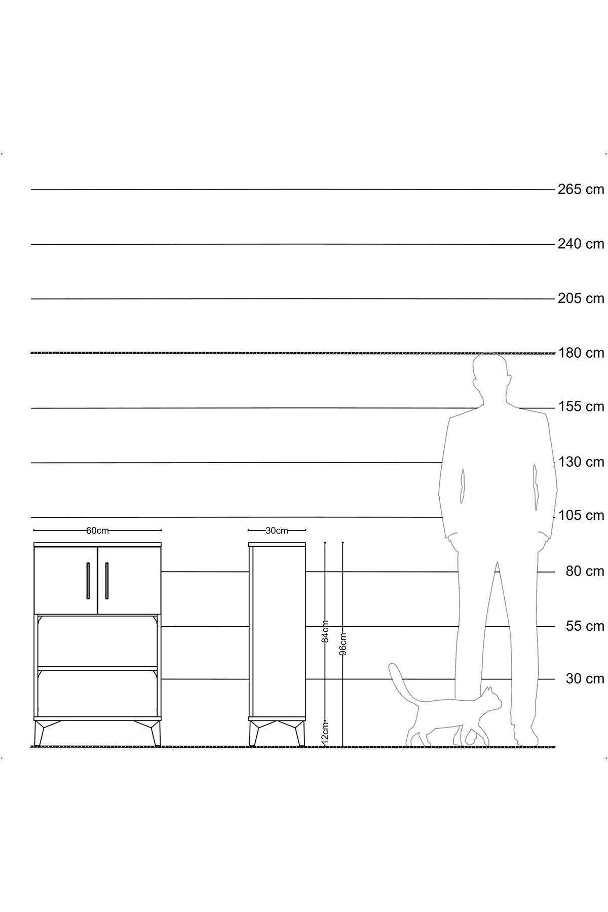 Arges Komodin 2 Raflı 2 Kapaklı 60x30x96 Çam-Antrasit