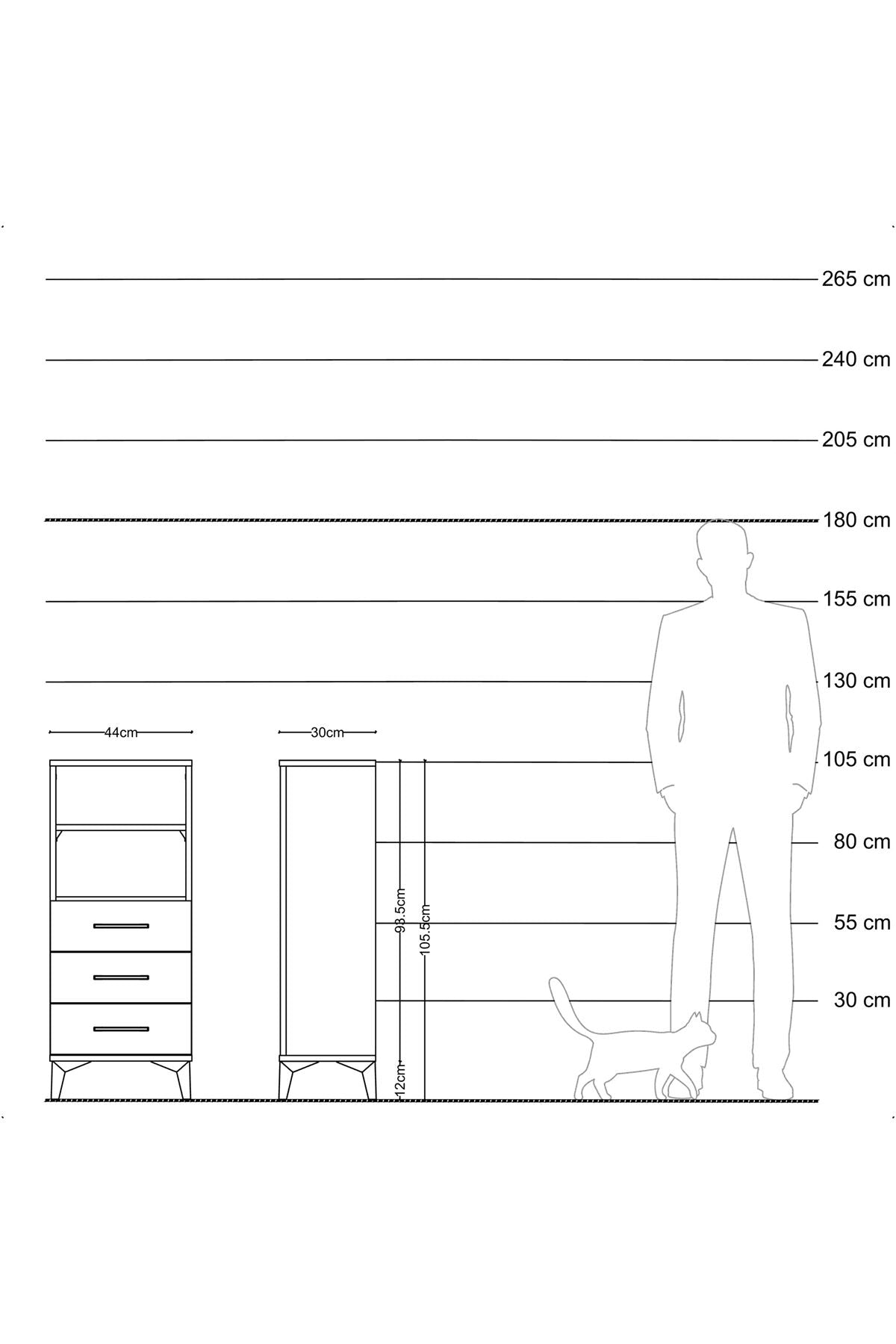 Arges Komodin 2 Raflı 3 Çekmeceli 44x30x106 Çam-Çam
