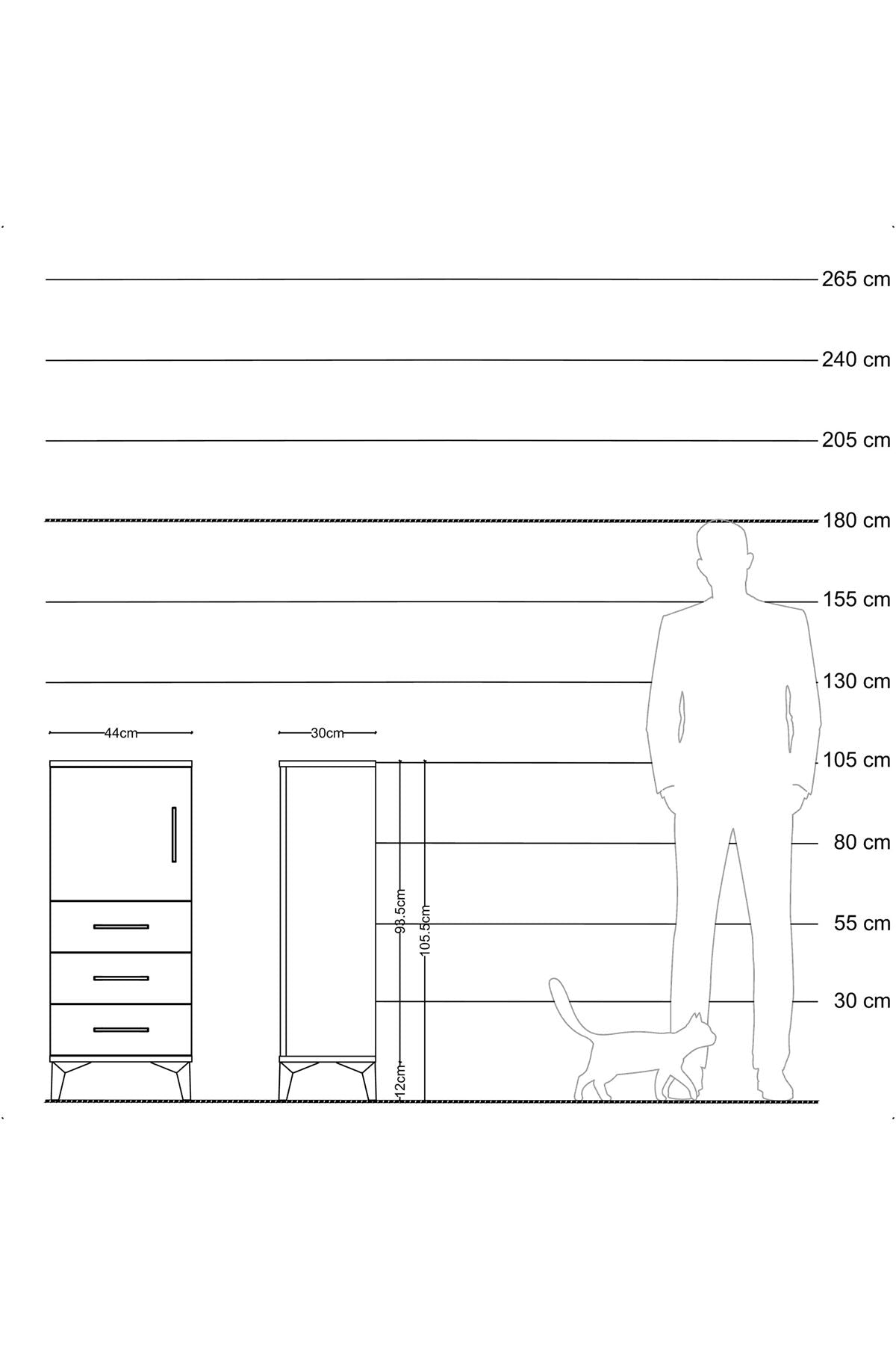 Arges Komodin 2 Raflı 3 Çekmeceli Tek Kapaklı 44x30x106 Aytaşı-Aytaşı