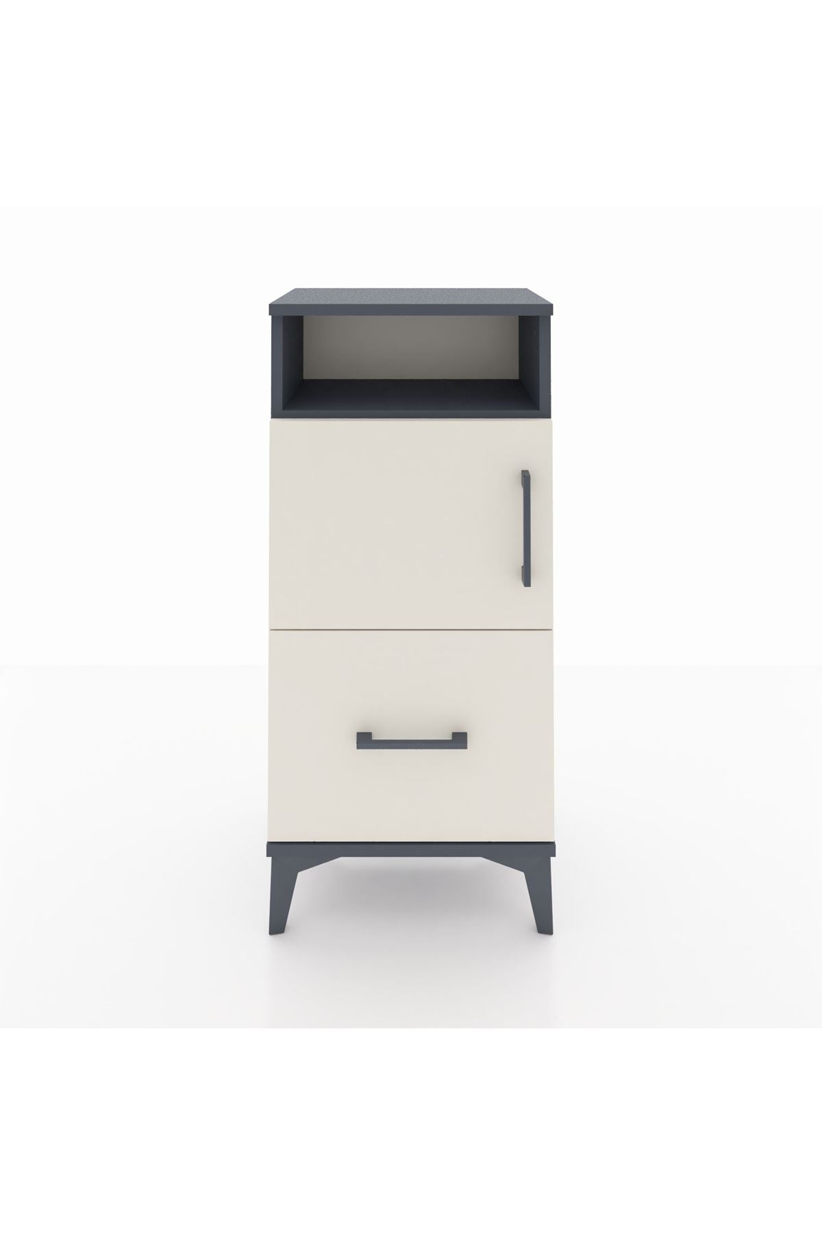 Arges Komodin 2 Raflı Tek Çekmeceli 2 Kapaklı 44x30x96 Antrasit-Aytaşı
