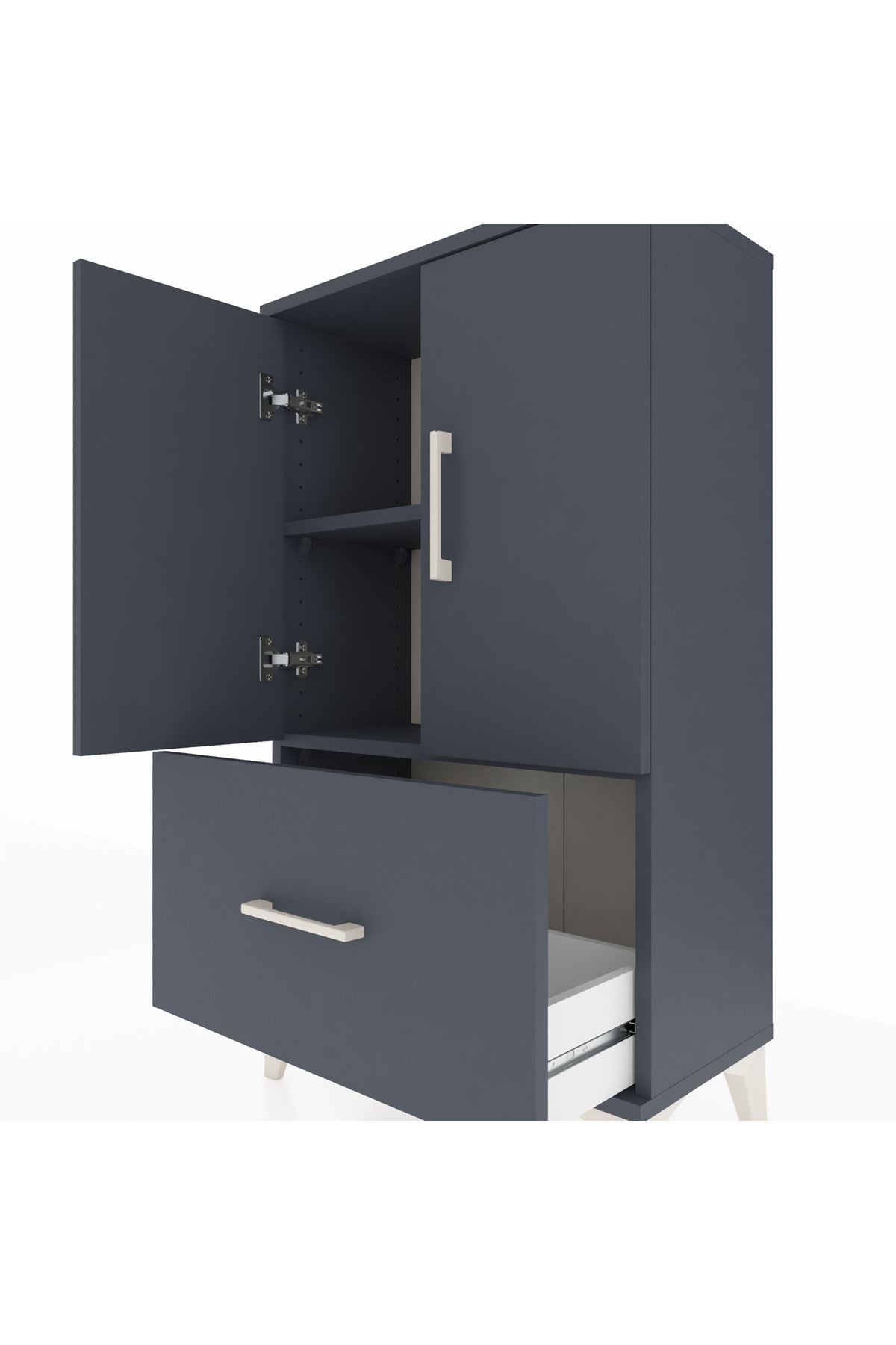 Arges Komodin 2 Raflı Tek Çekmeceli 2 Kapaklı 60x30x106 Antrasit-Antrasit