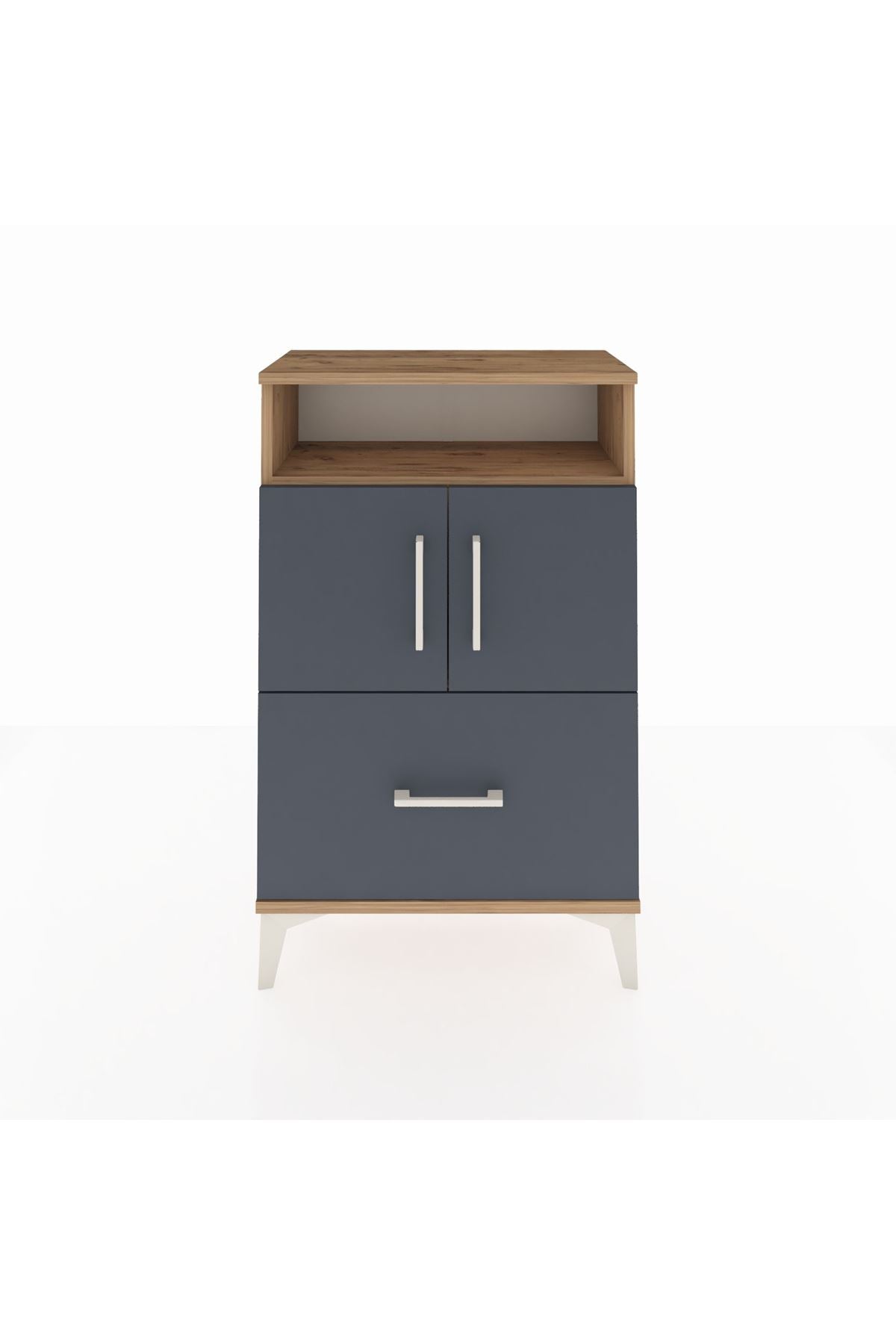Arges Komodin 2 Raflı Tek Çekmeceli 2 Kapaklı 60x30x96 Çam-Antrasit