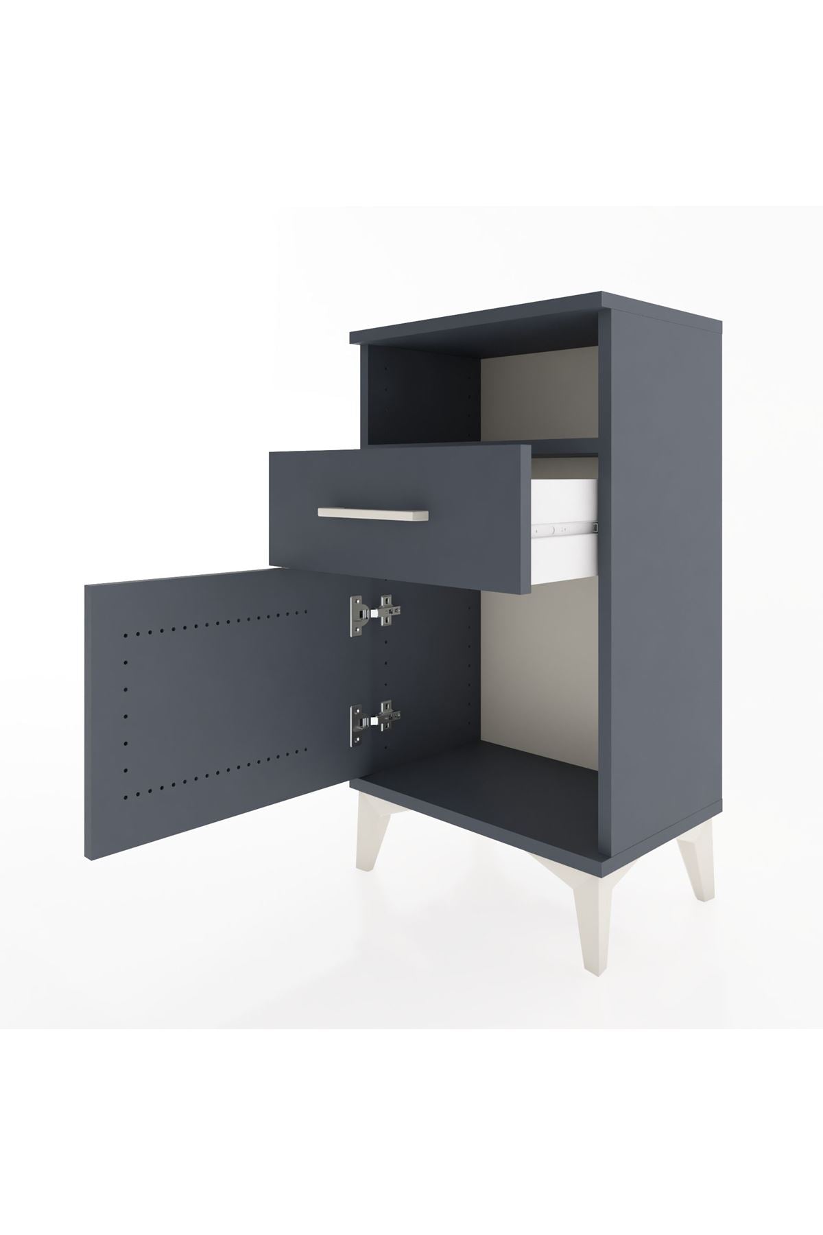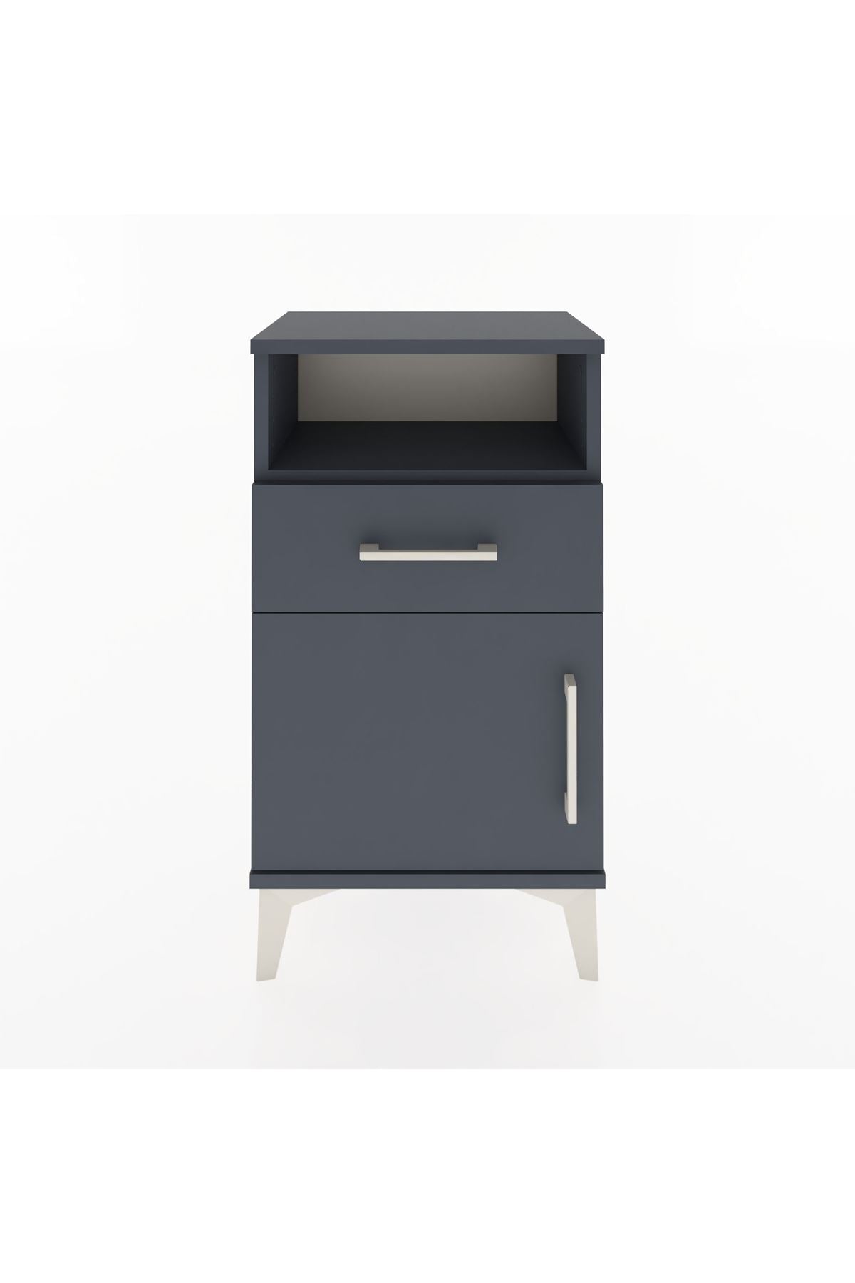 Arges Komodin 2 Raflı Tek Çekmeceli Tek Kapaklı 44x30x80 Antrasit-Antrasit