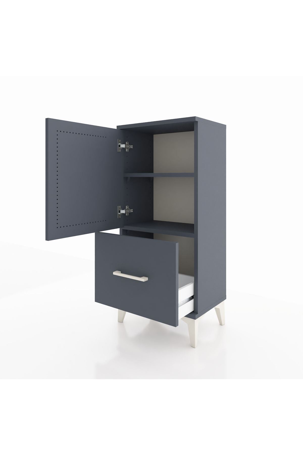 Arges Komodin 2 Raflı Tek Çekmeceli Tek Kapaklı 44x30x96 Antrasit-Antrasit