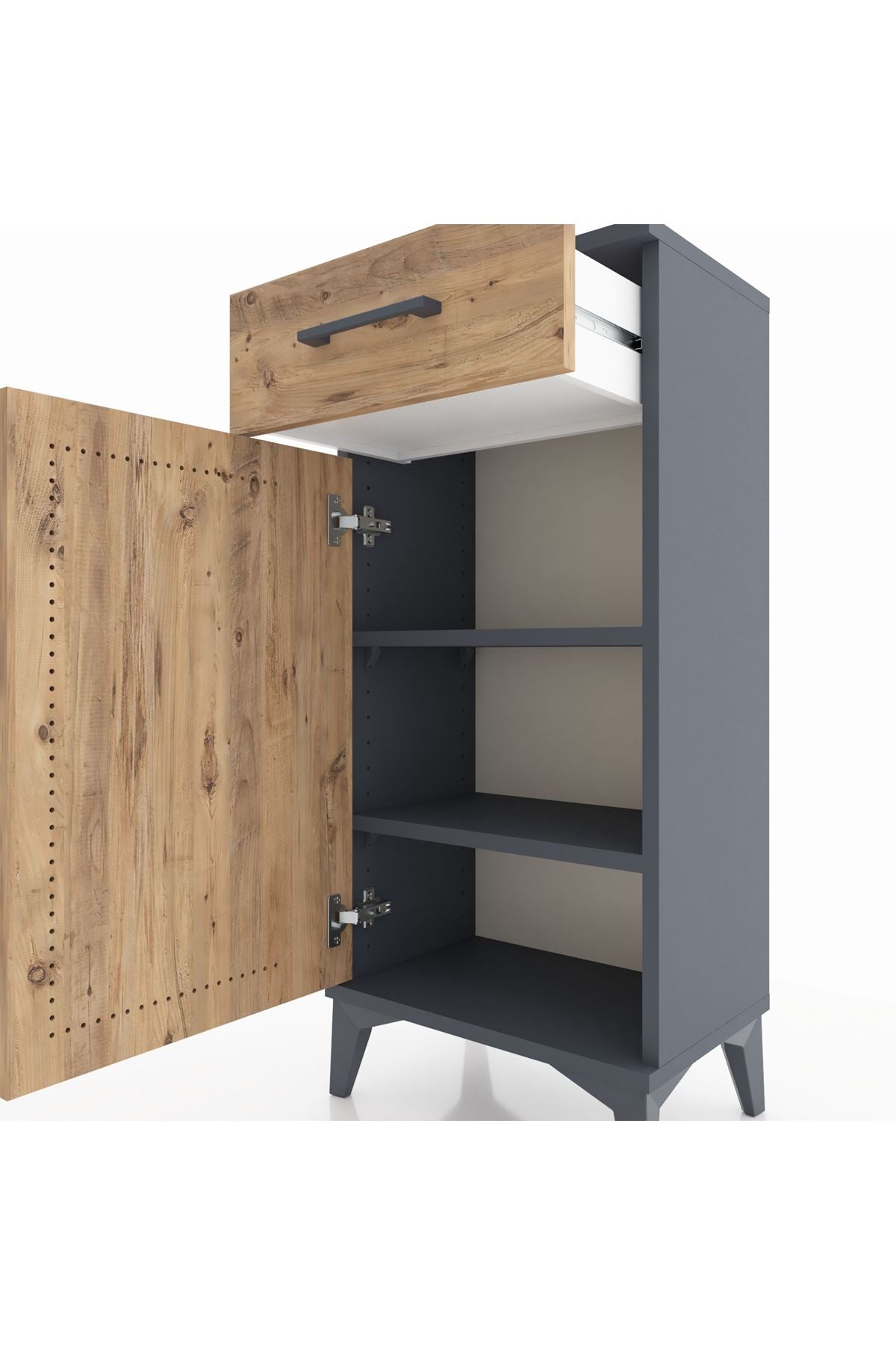Arges Komodin 2 Raflı Tek Çekmeceli Tek Kapaklı 44x30x96 Antrasit-Çam