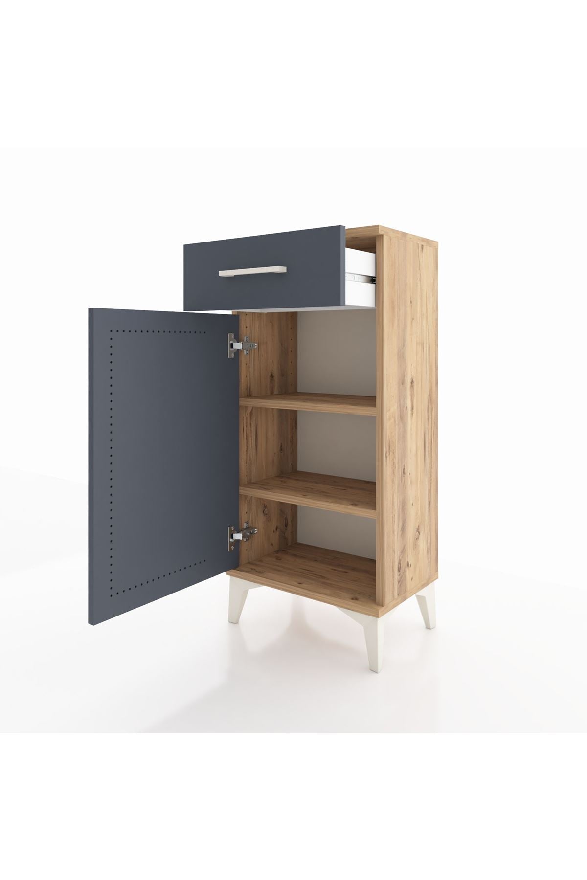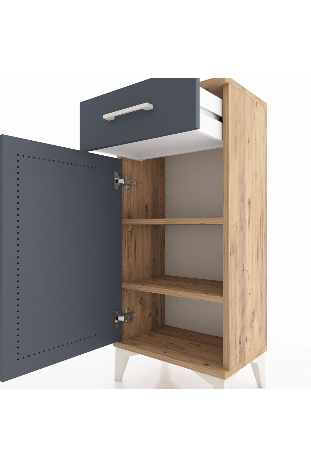 Arges Komodin 2 Raflı Tek Çekmeceli Tek Kapaklı 44x30x96 Çam-Antrasit