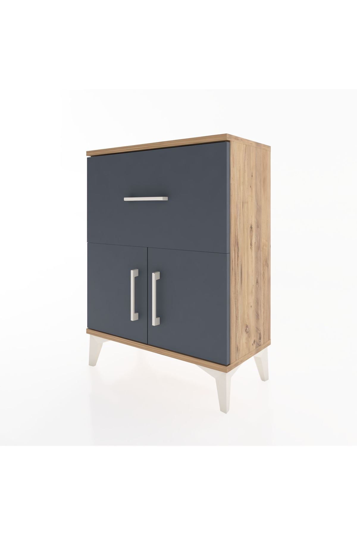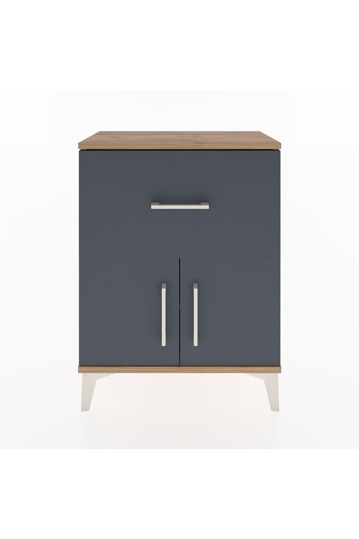 Arges Komodin 3 Raflı Tek Çekmeceli 2 Kapaklı 60x30x80 Çam-Antrasit
