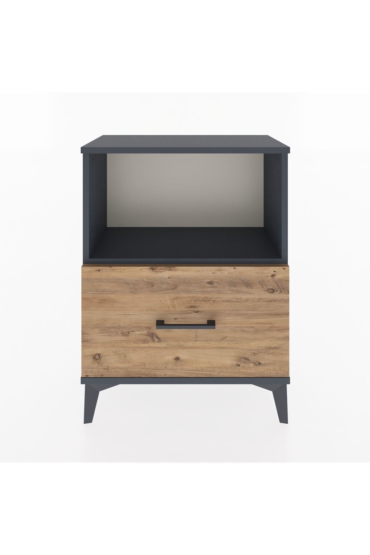 Arges Komodin Tek Çekmeceli 60x30x80 Antrasit-Çam
