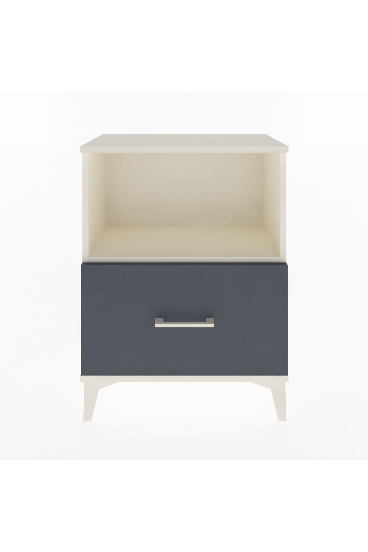 Komodin tek bir parça ile hem depolama hem sergileme alanı sağlar: üst bölme açık raf işlevi görürken alt çekmece gizli saklama sunar. 1. sınıf suntalam yüzeyler kolay temizlenir ve çizilmelere karşı dayanıklıdır. Raflar ayarlanabilir olması sayesinde kitap, kutu veya elektronik aksesuar gibi farklı ebatlardaki ürünlere uygun depolama düzeni oluşturabilirsiniz. Çekmece sayısı konfigüre edilebilir özelliği sayesinde ihtiyaçlarınıza göre ek çekmece ya da daha sade tek çekmeceli çözüm tercih edebilirsiniz. Metal ayak yapısı zemine dengeli oturur, taşıma ve yer değiştirme sırasında mobilyanın stabilitesi korunur.