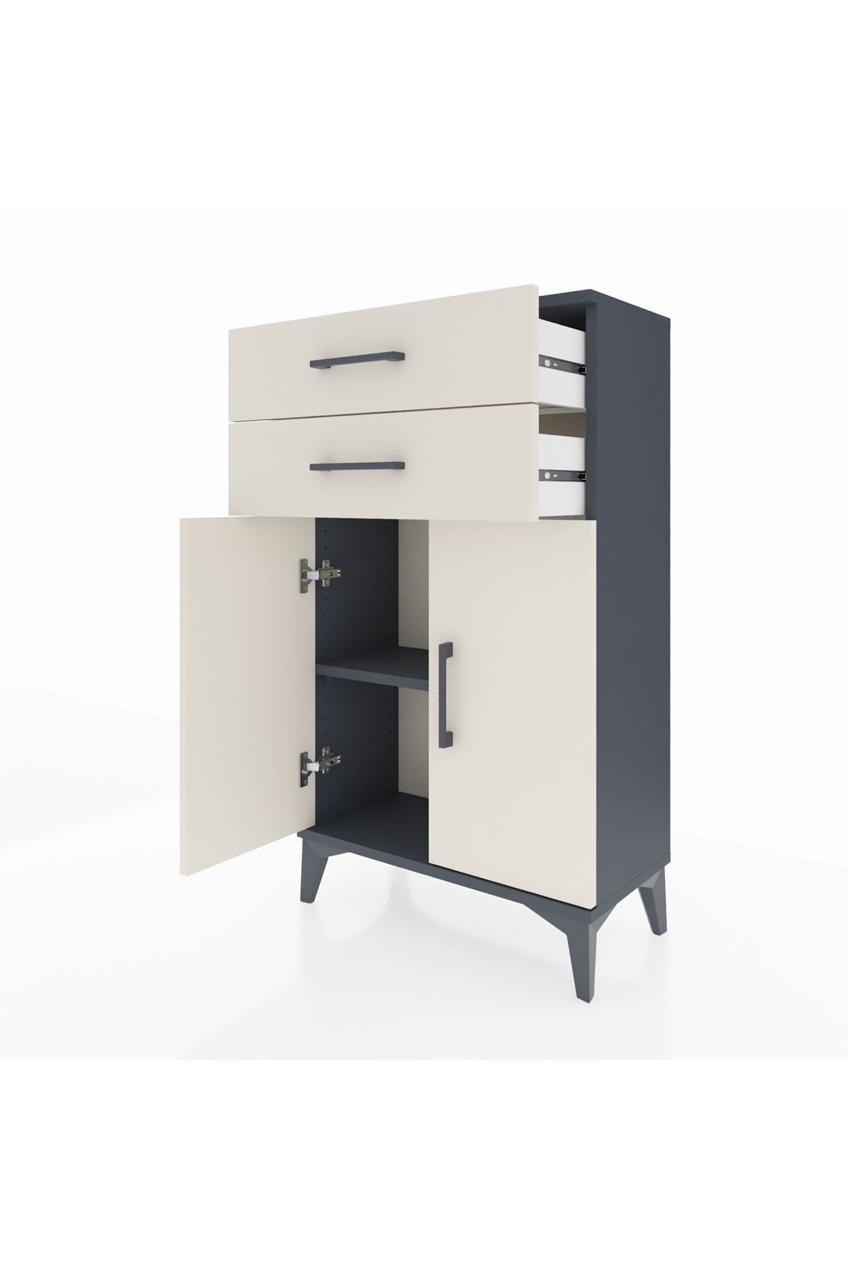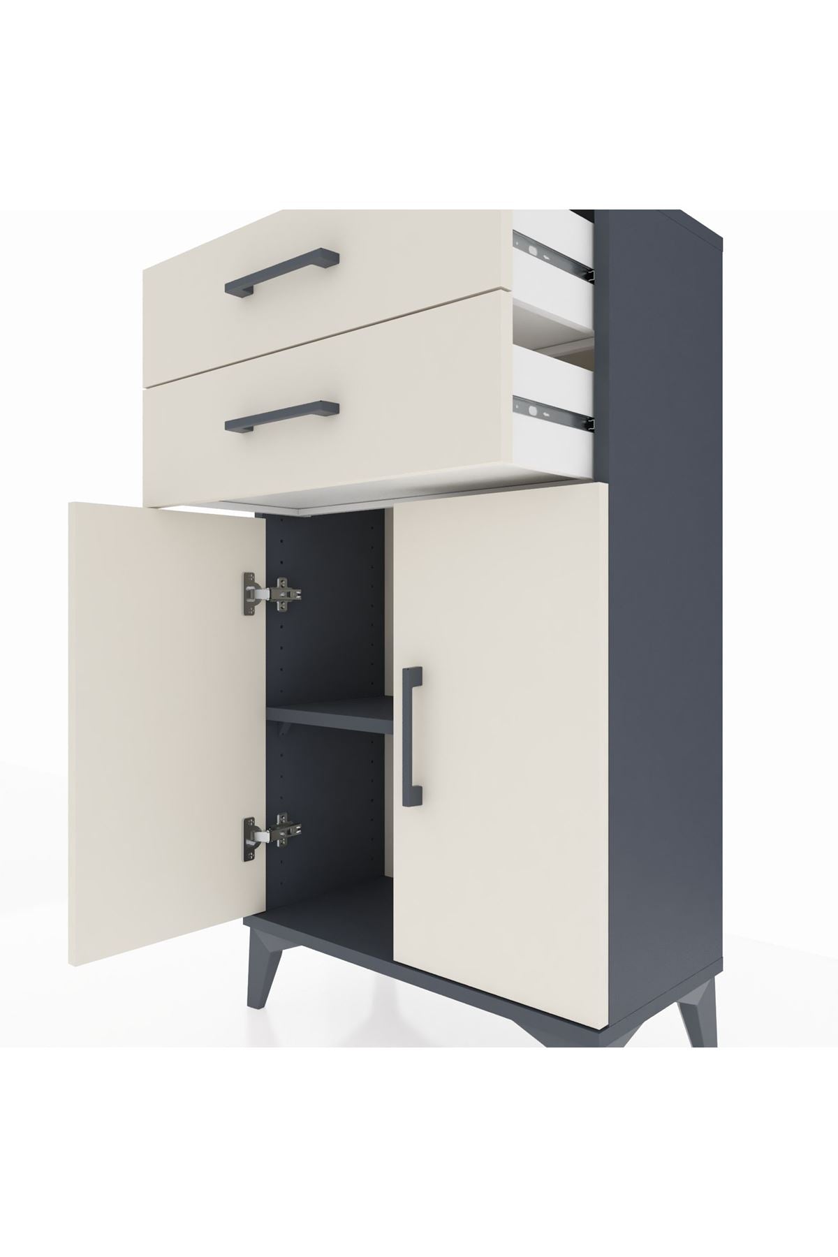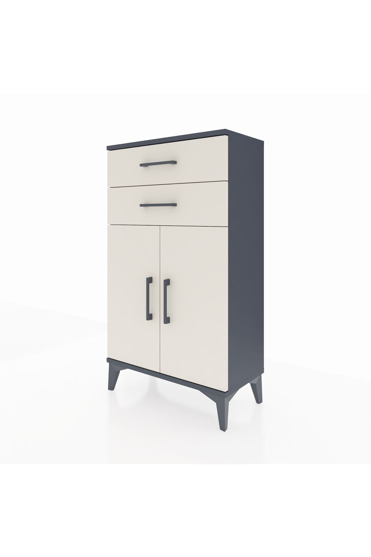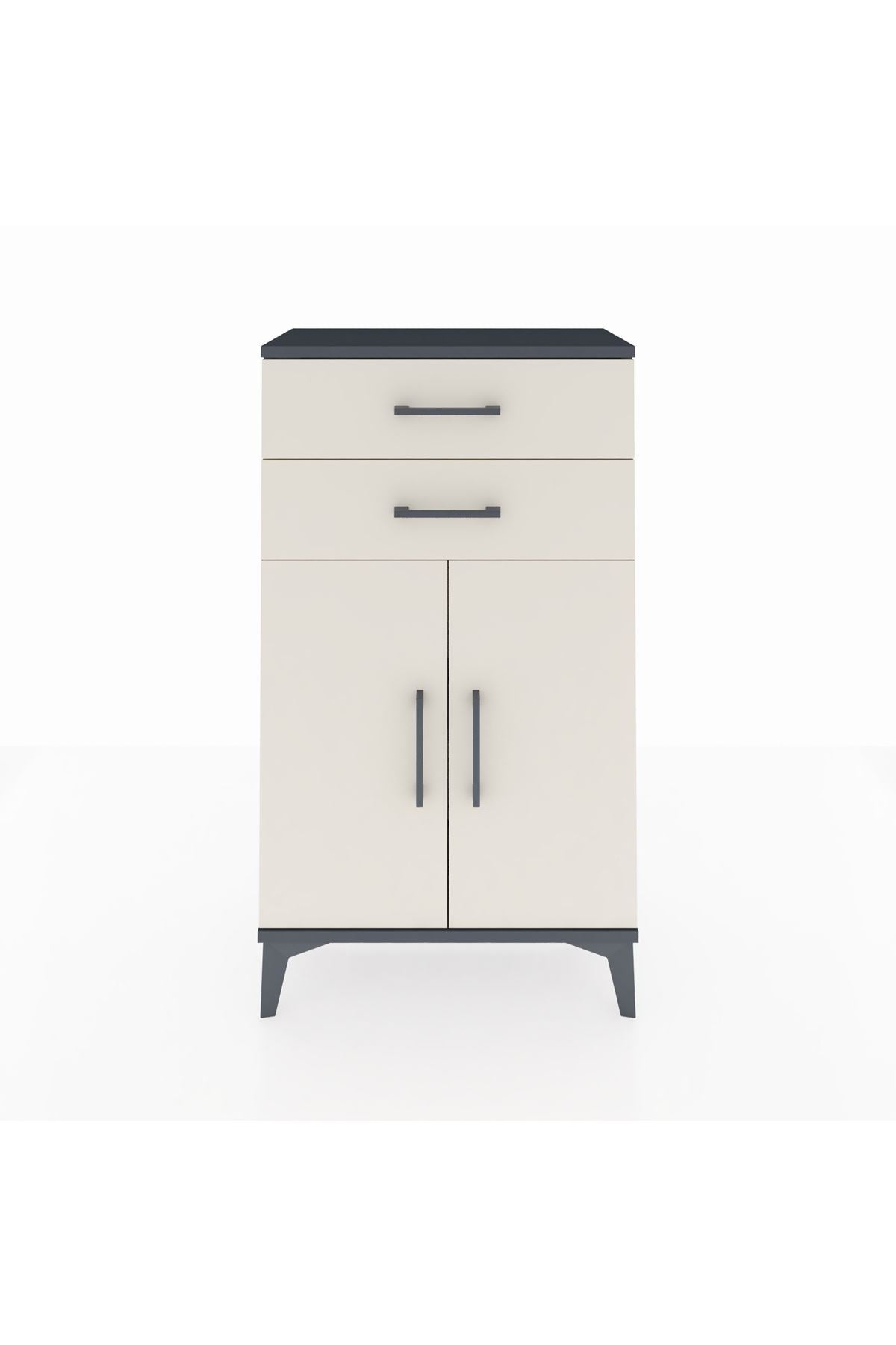 Arges Komodin Tek Raflı 2 Çekmeceli 2 Kapaklı 60x30x106 Antrasit-Aytaşı