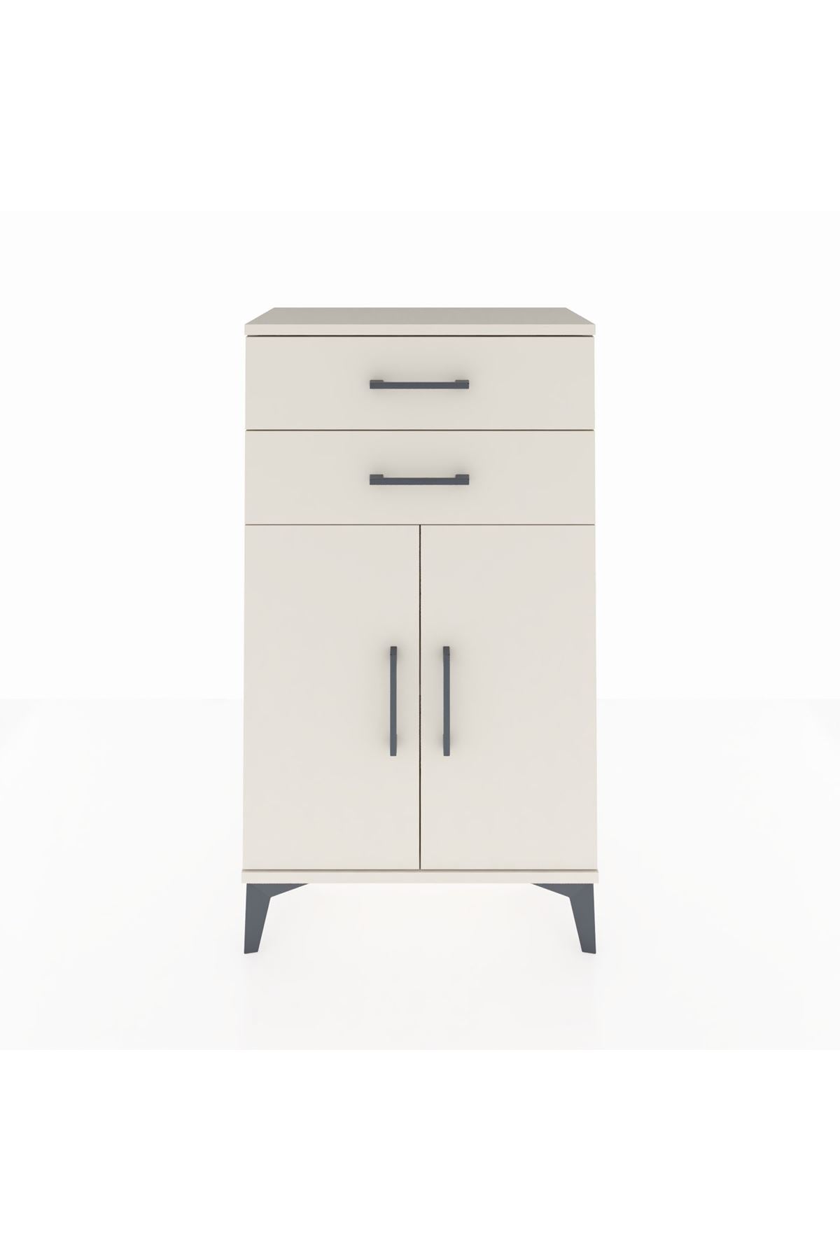 Arges Komodin Tek Raflı 2 Çekmeceli 2 Kapaklı 60x30x106 Aytaşı-Aytaşı