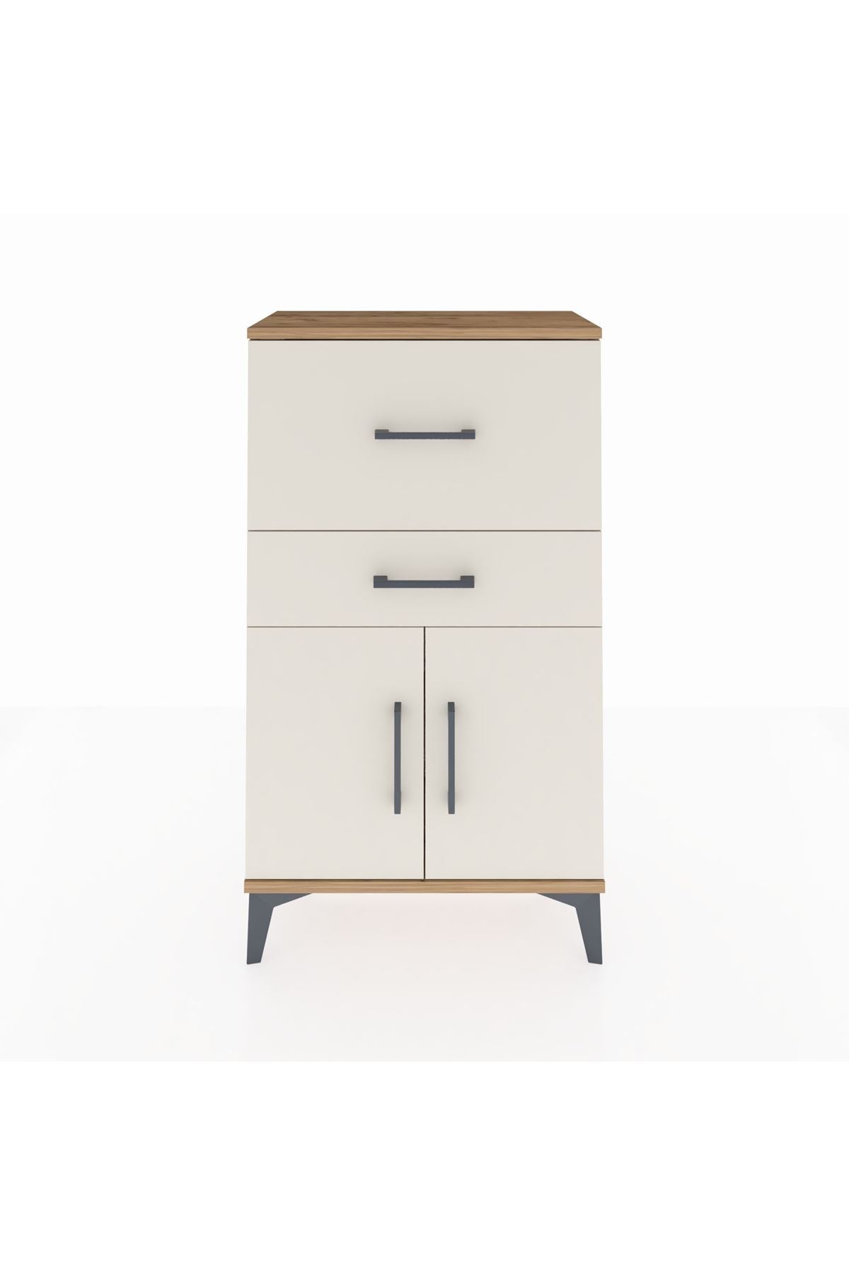 Arges Komodin Tek Raflı 2 Çekmeceli 2 Kapaklı 60x30x106 Çam-Aytaşı