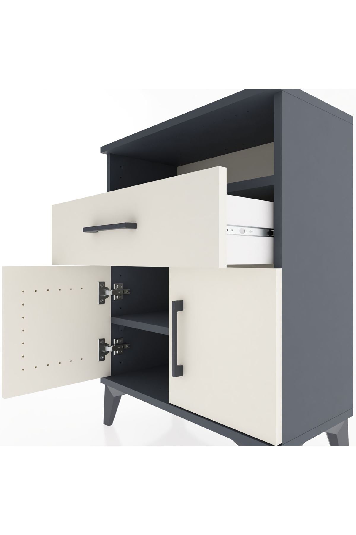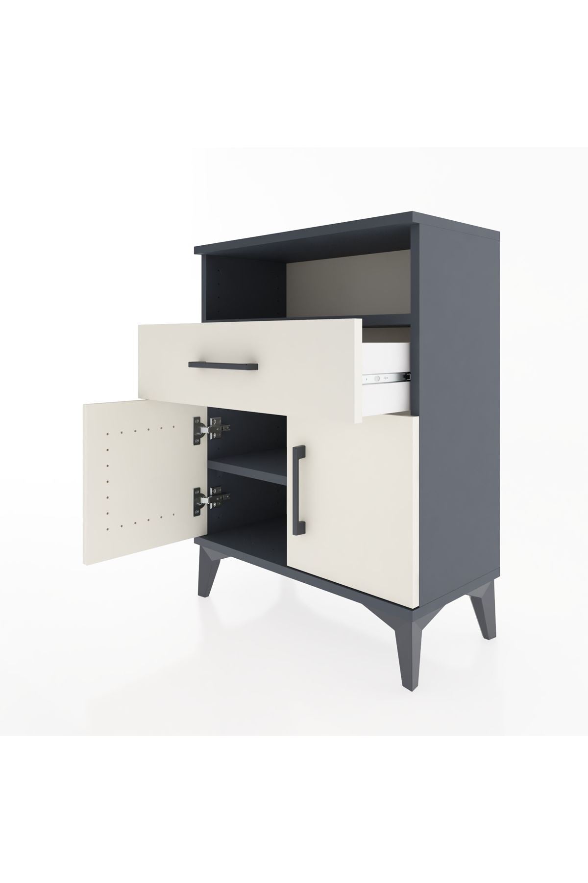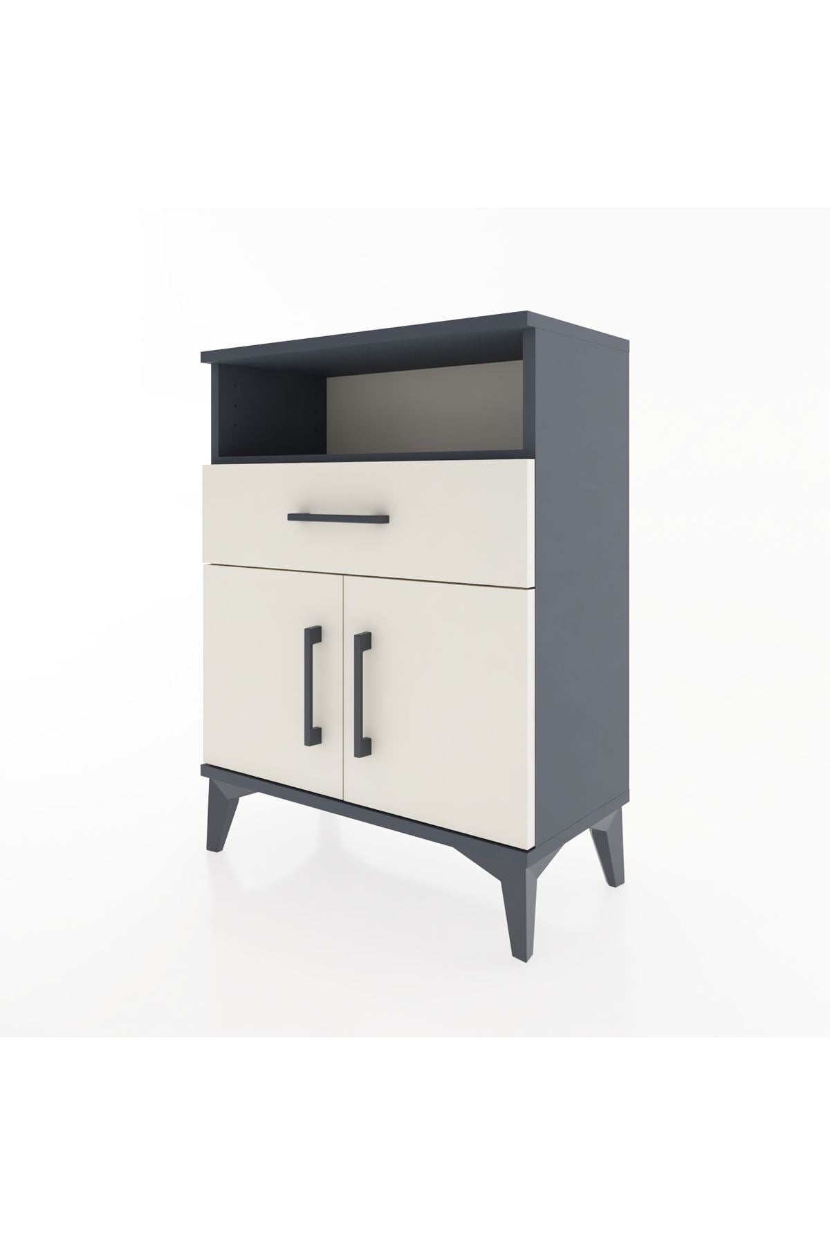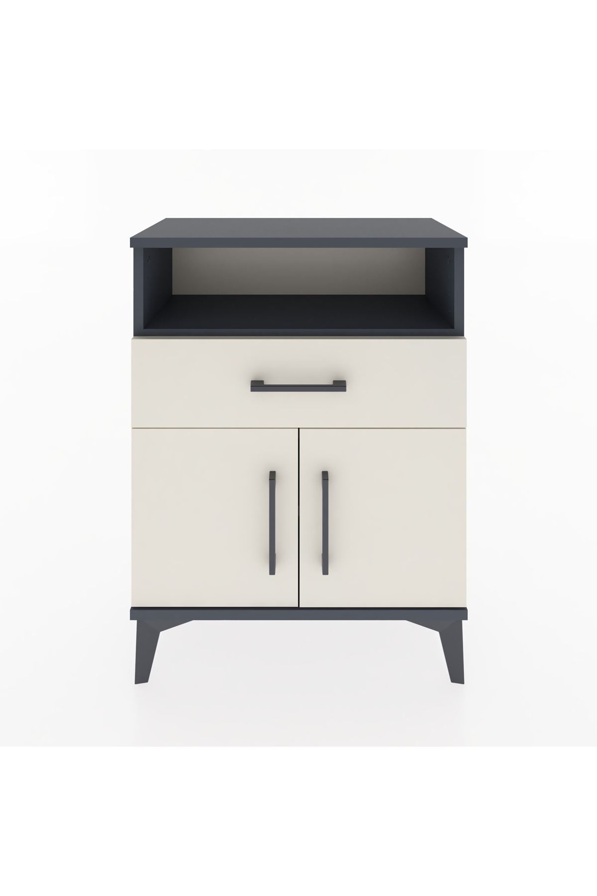 Arges Komodin Tek Raflı 2 Çekmeceli 2 Kapaklı 60x30x80 Antrasit-Aytaşı