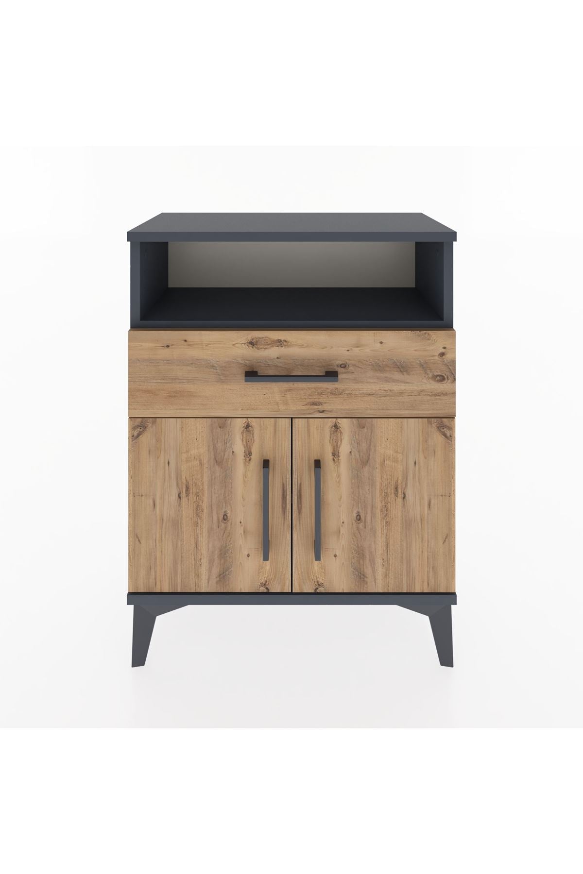 Arges Komodin Tek Raflı 2 Çekmeceli 2 Kapaklı 60x30x80 Antrasit-Çam – Fonksiyonel ve Şık