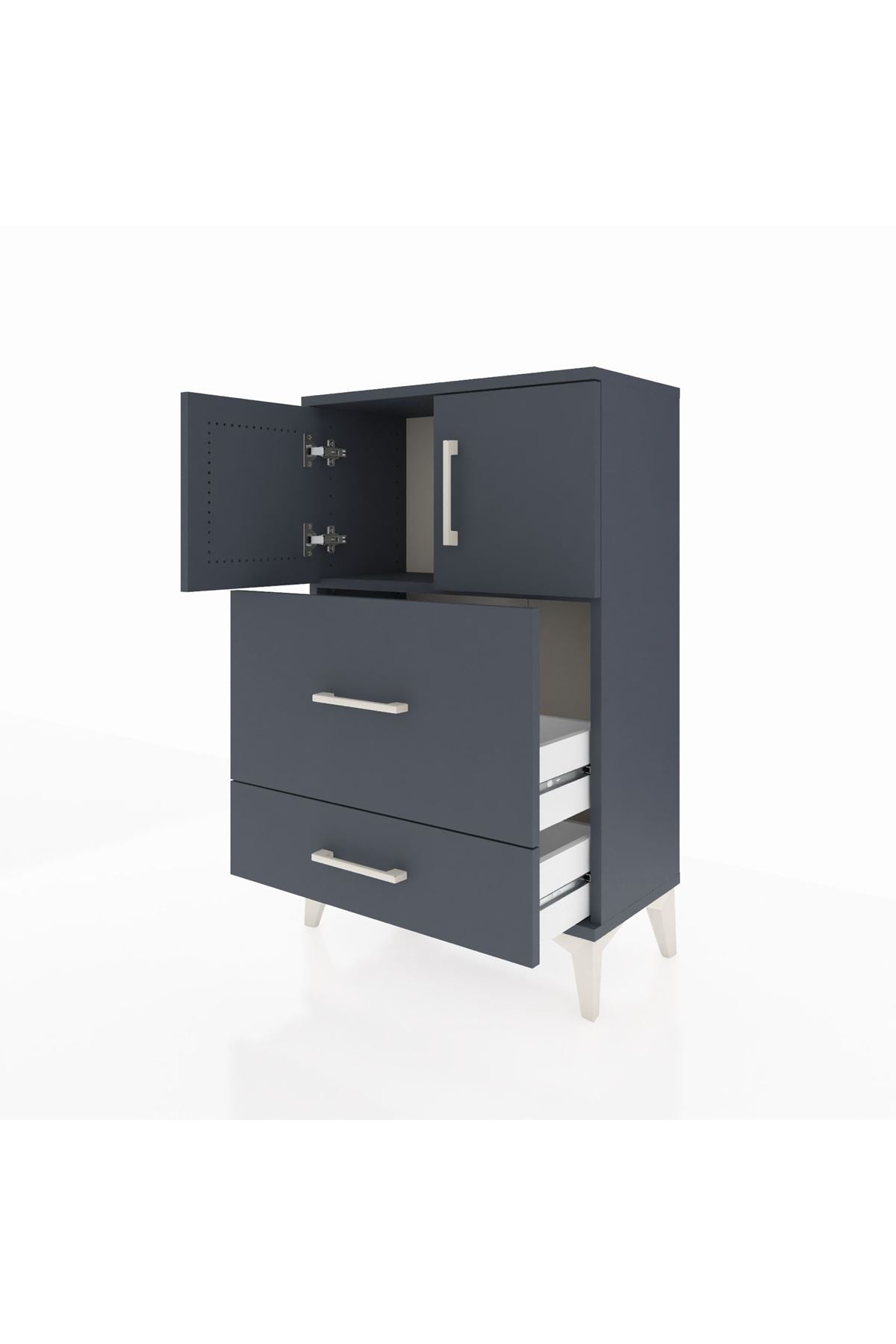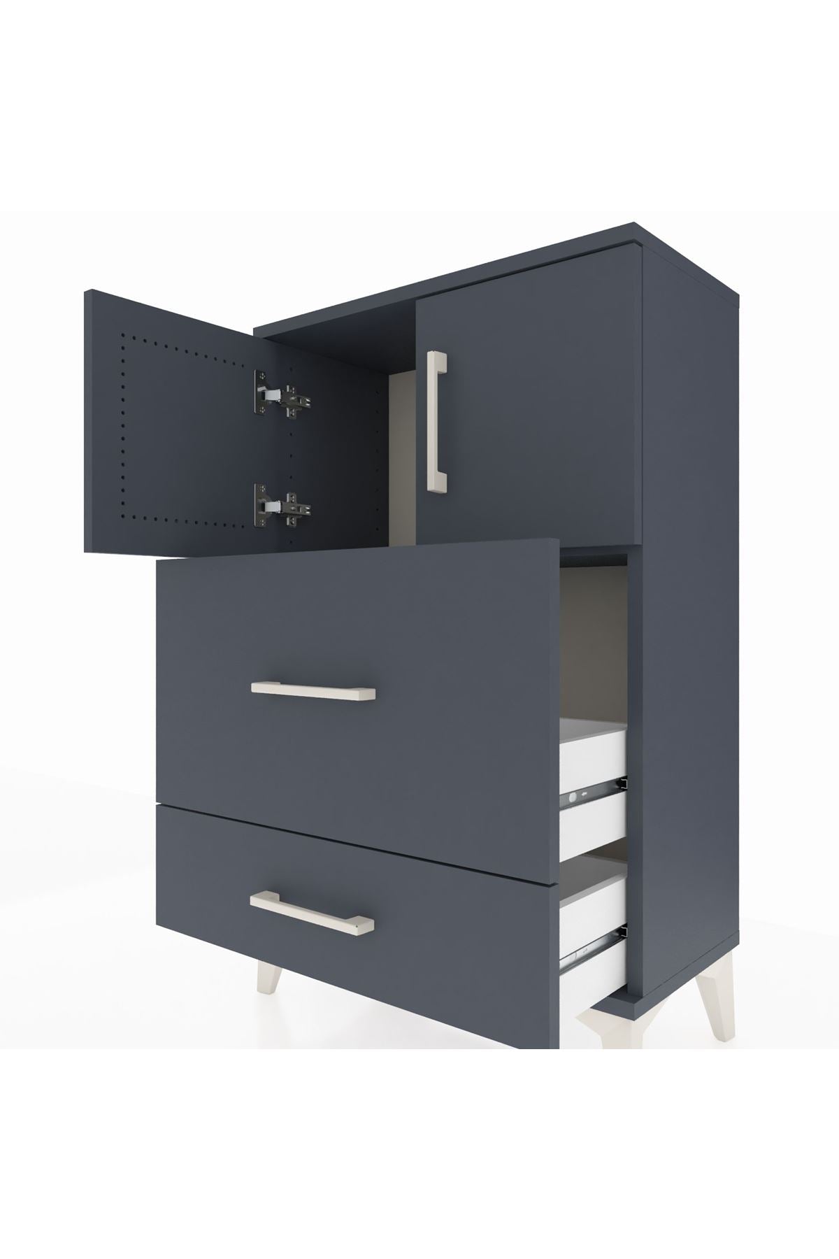 Arges Komodin Tek Raflı 2 Çekmeceli 2 Kapaklı 60x30x96 Antrasit-Antrasit