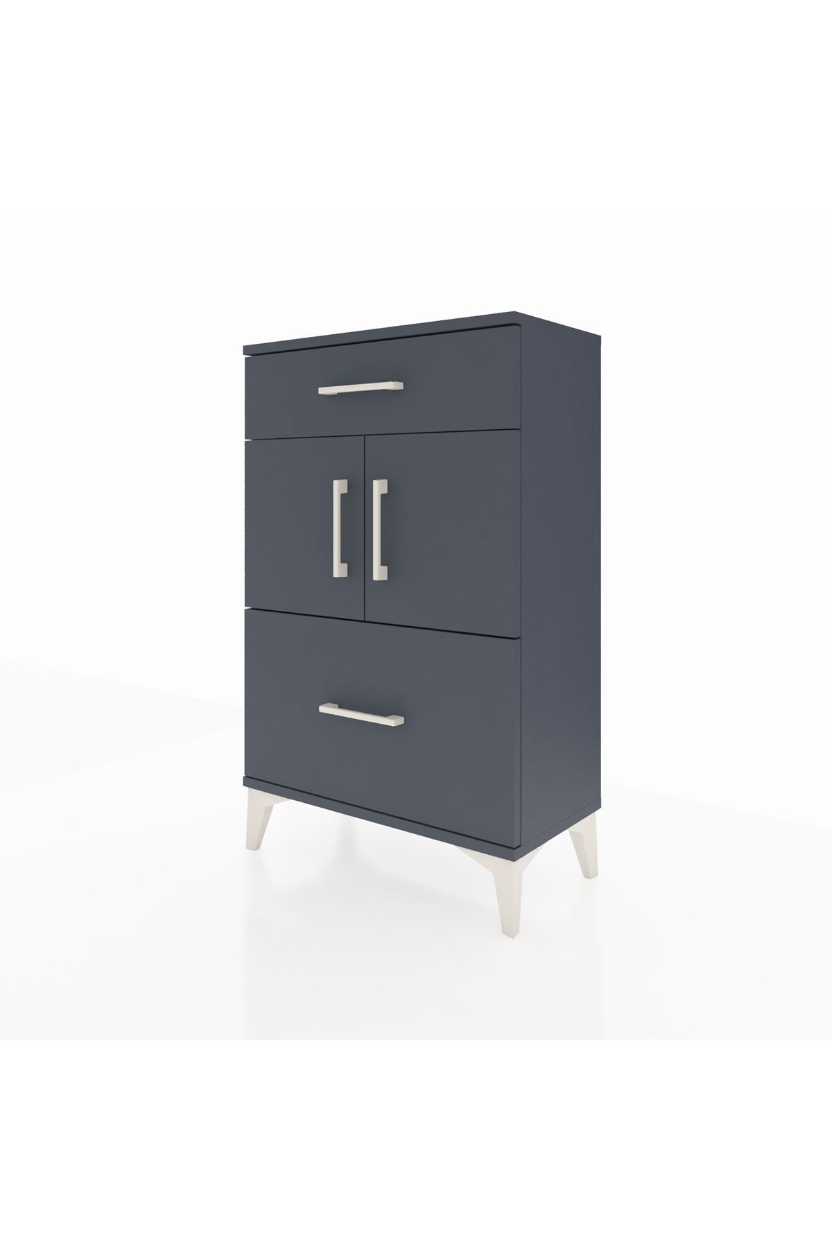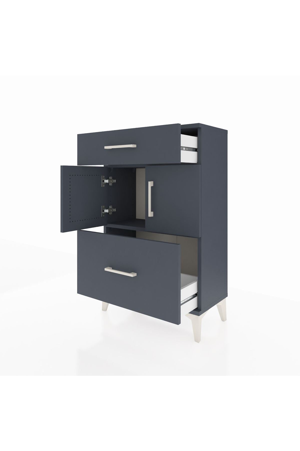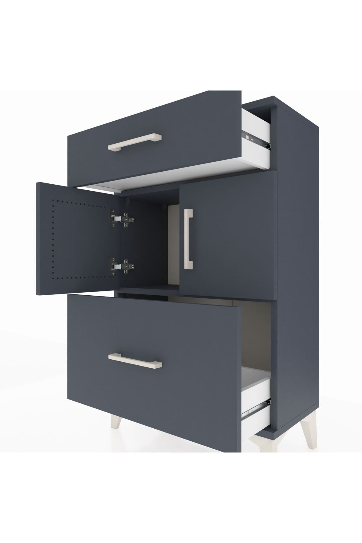 Arges Komodin Tek Raflı 2 Çekmeceli 2 Kapaklı 60x30x96 Antrasit-Antrasit