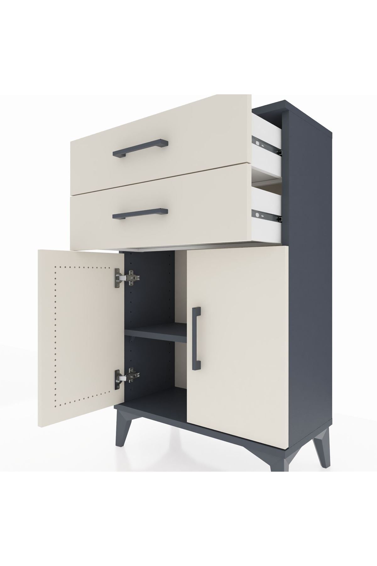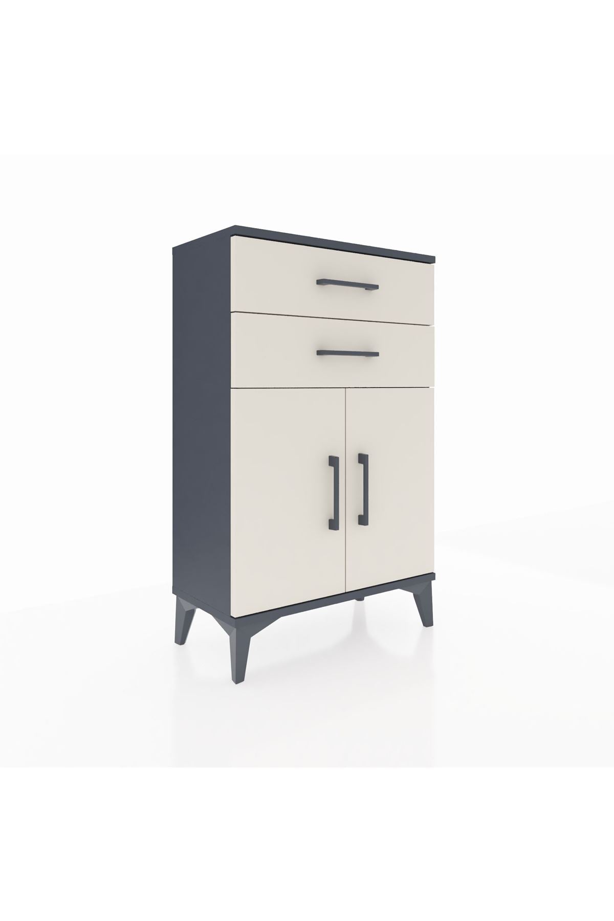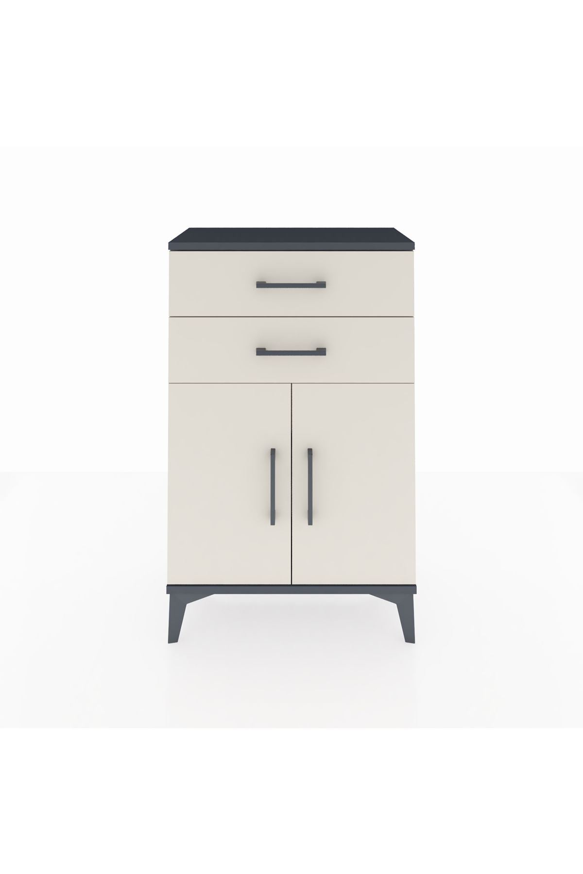 Arges Komodin Tek Raflı 2 Çekmeceli 2 Kapaklı 60x30x96 Antrasit-Aytaşı