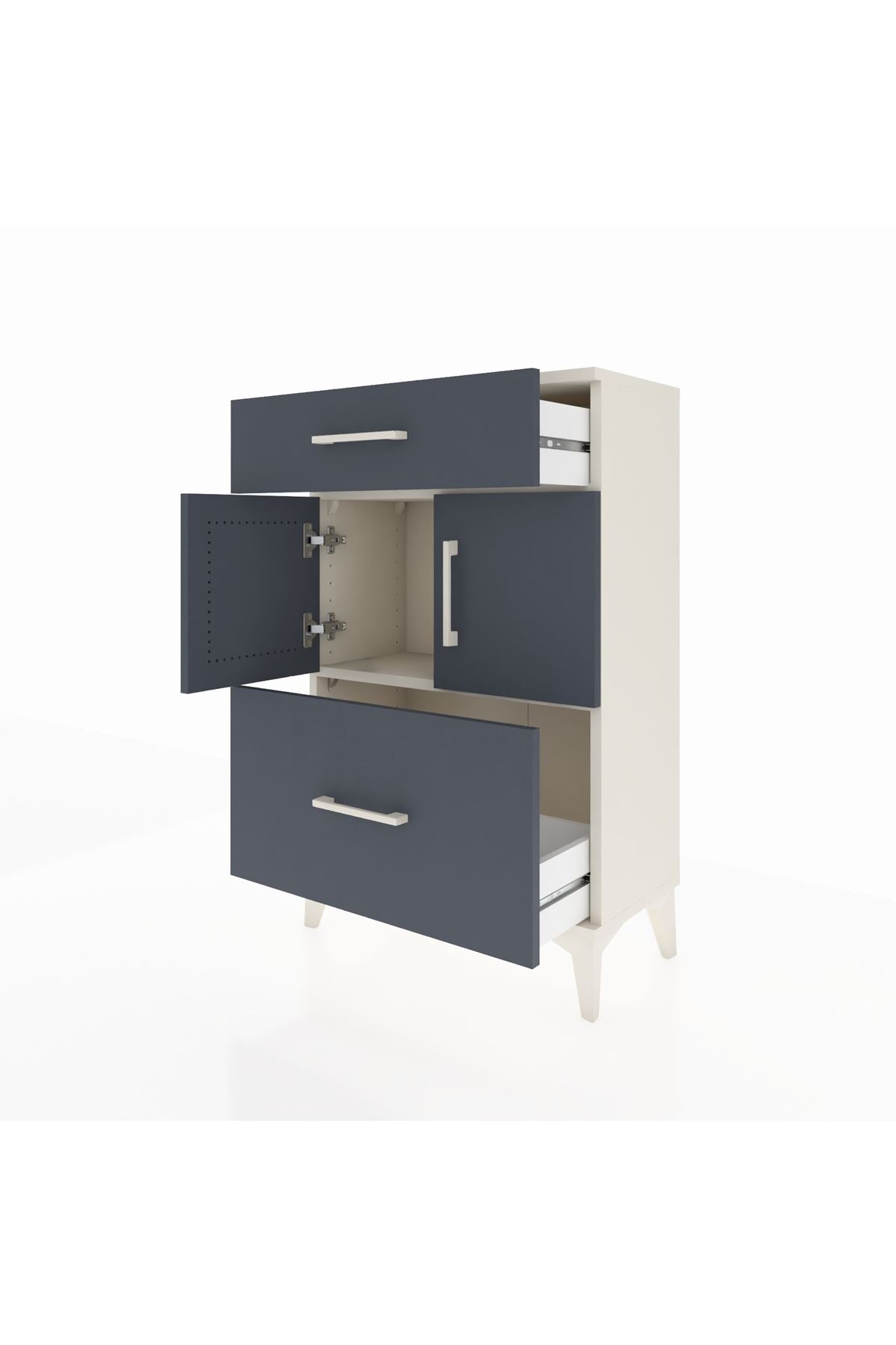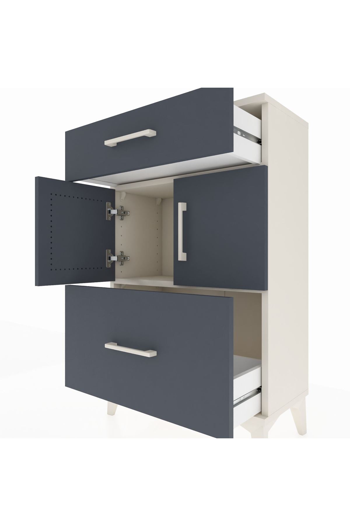 Arges Komodin Tek Raflı 2 Çekmeceli 2 Kapaklı 60x30x96 Aytaşı-Antrasit