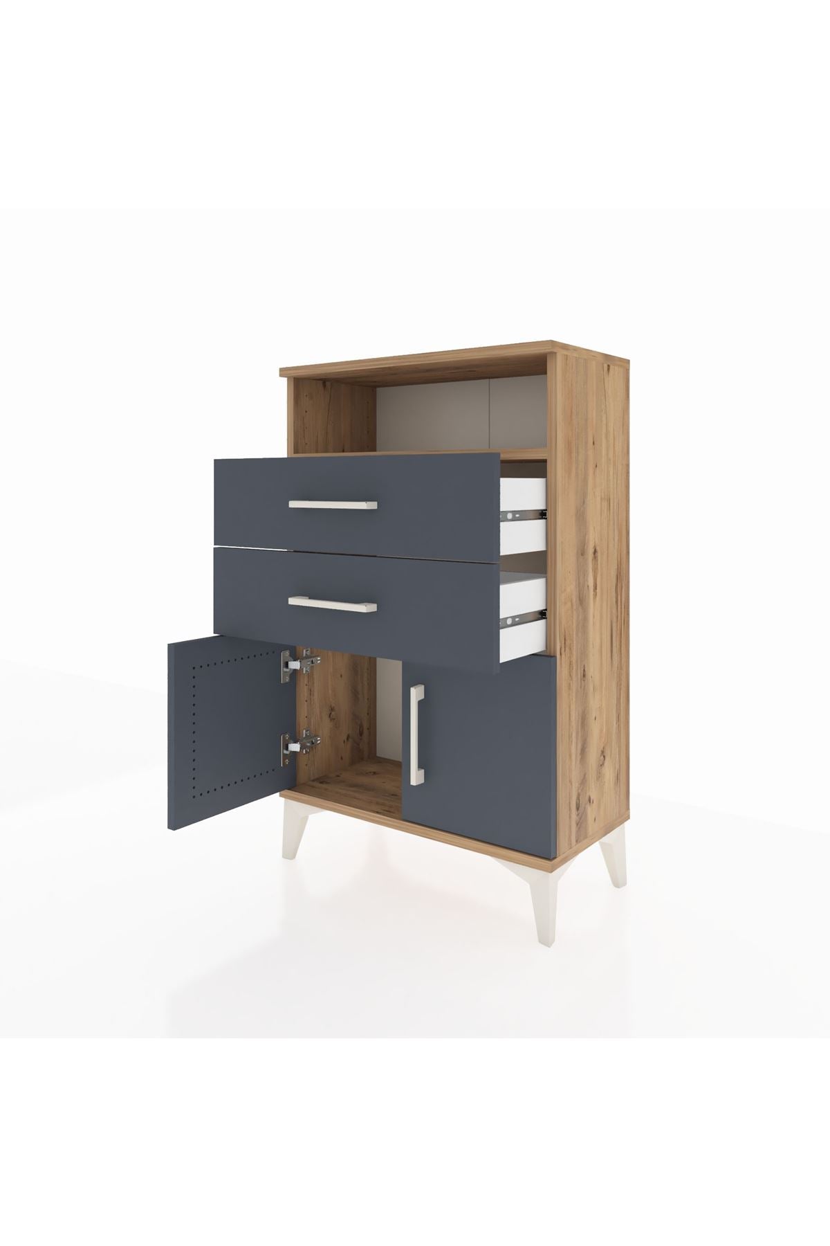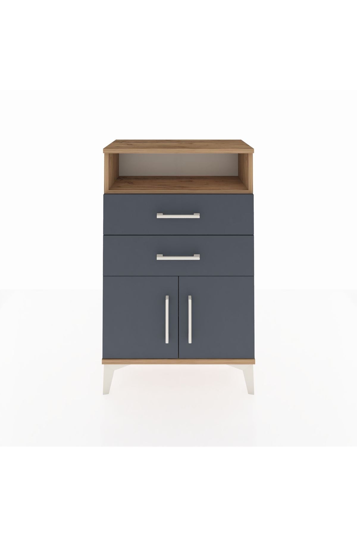 Arges Komodin Tek Raflı 2 Çekmeceli 2 Kapaklı 60x30x96 Çam-Antrasit
