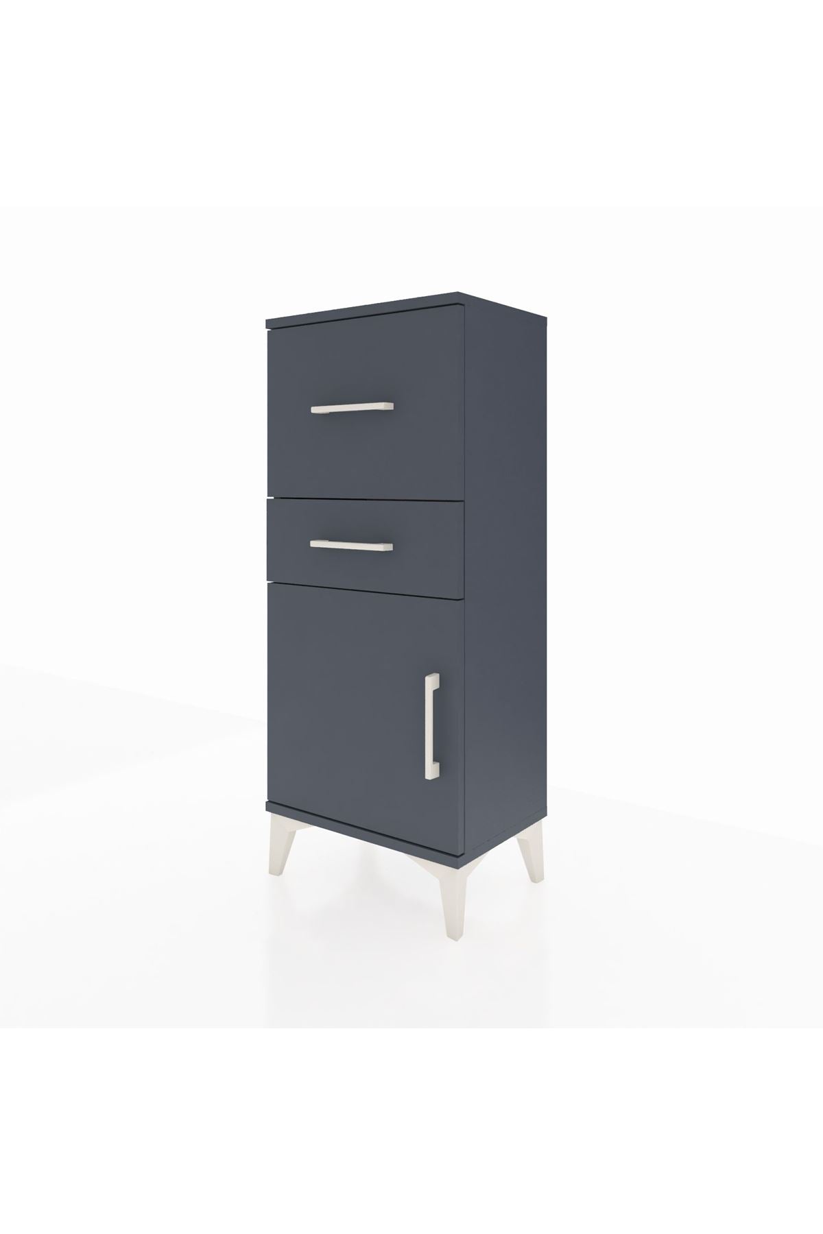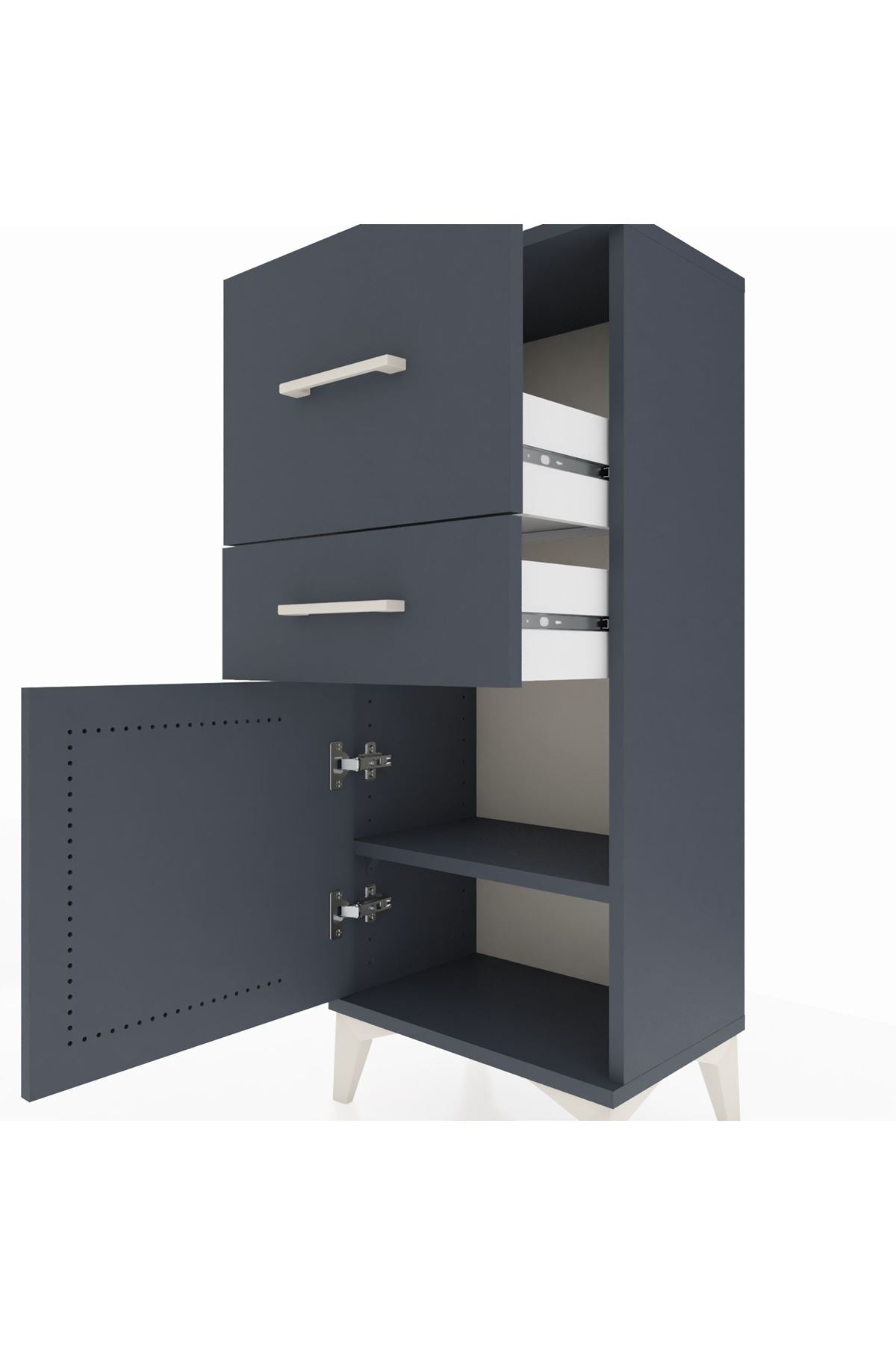 Arges Komodin Tek Raflı 2 Çekmeceli Tek Kapaklı 44x30x106 Antrasit-Antrasit