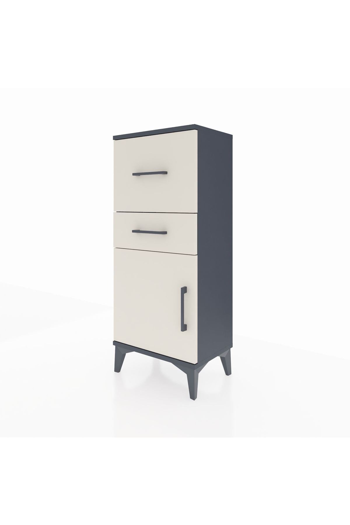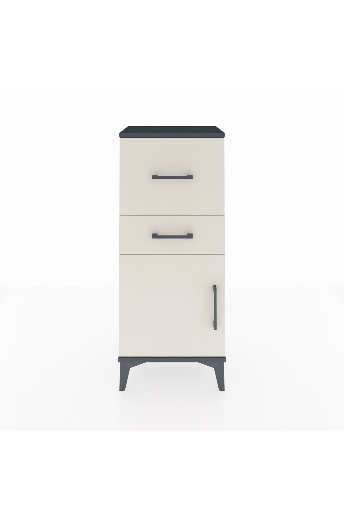 Arges Komodin Tek Raflı 2 Çekmeceli Tek Kapaklı 44x30x106 Antrasit-Aytaşı