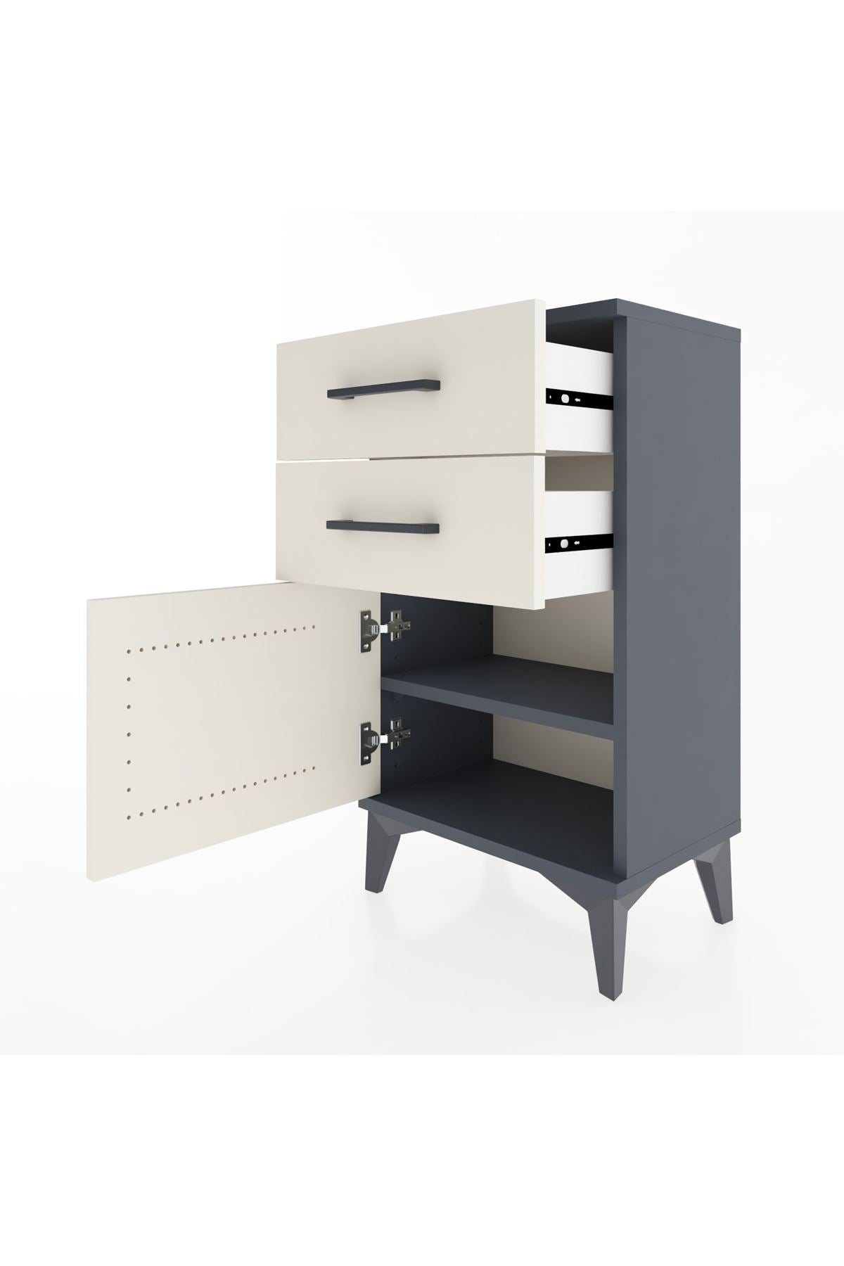 Arges Komodin Tek Raflı 2 Çekmeceli Tek Kapaklı 44x30x80 Antrasit-Aytaşı