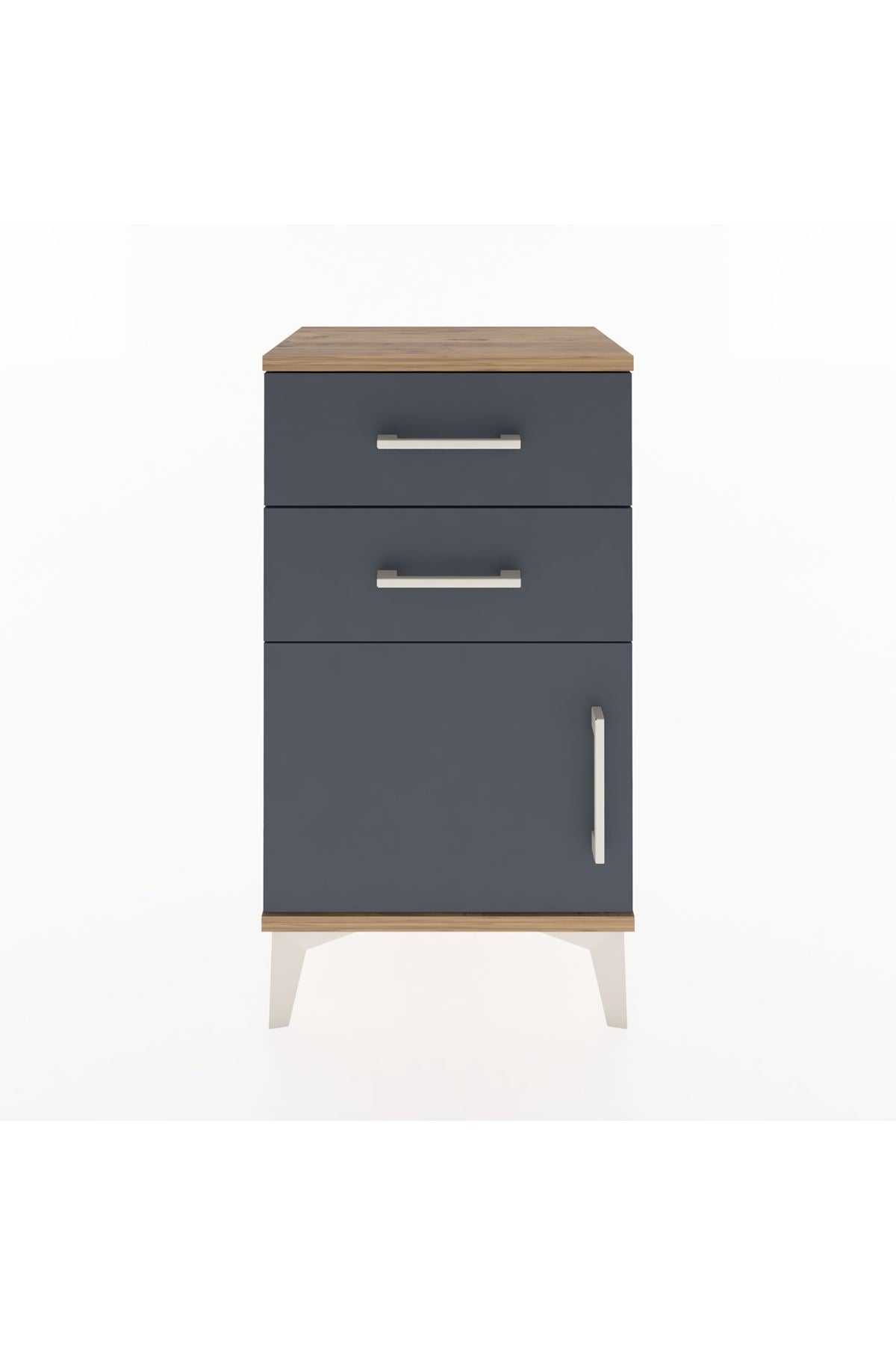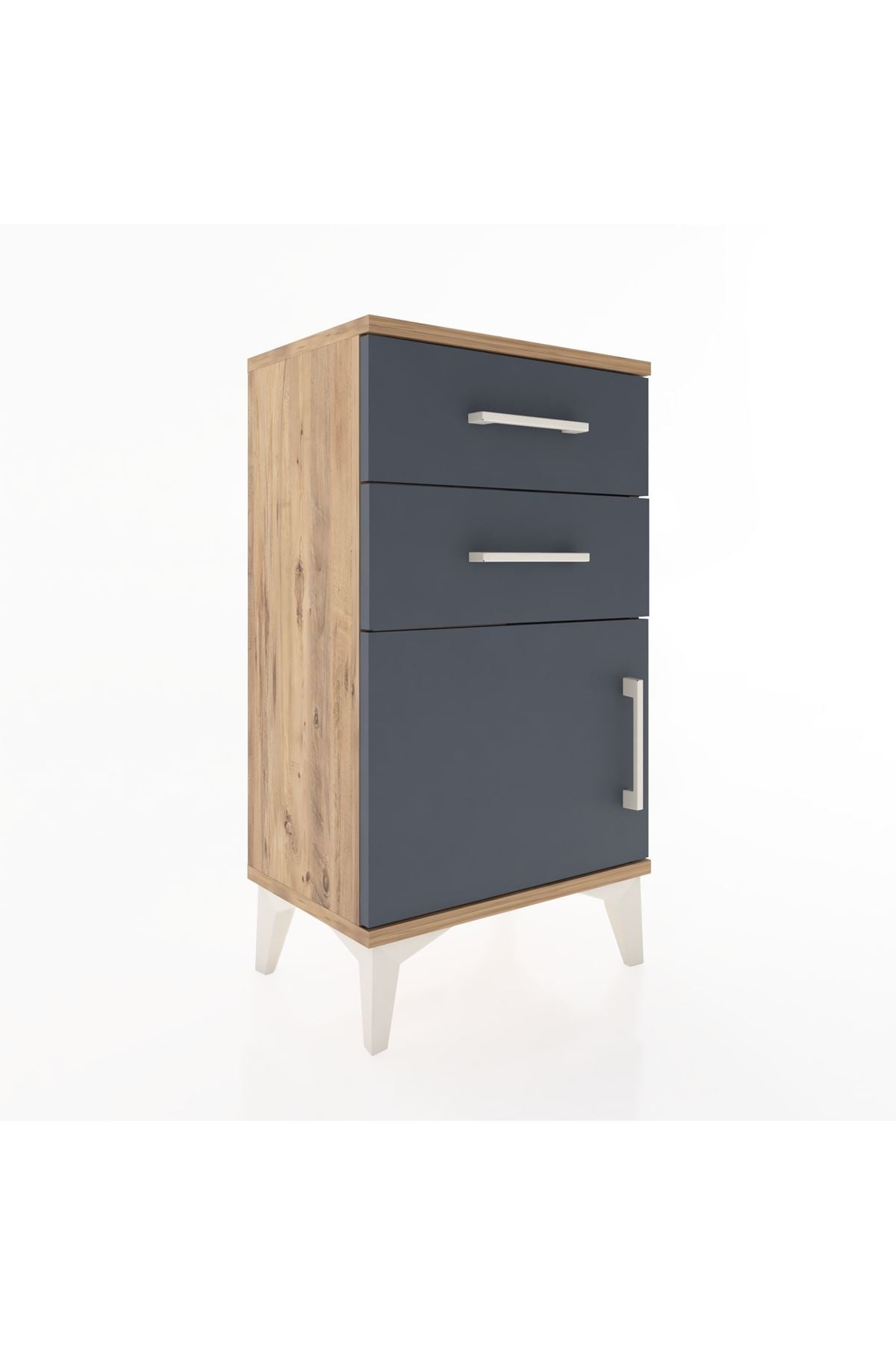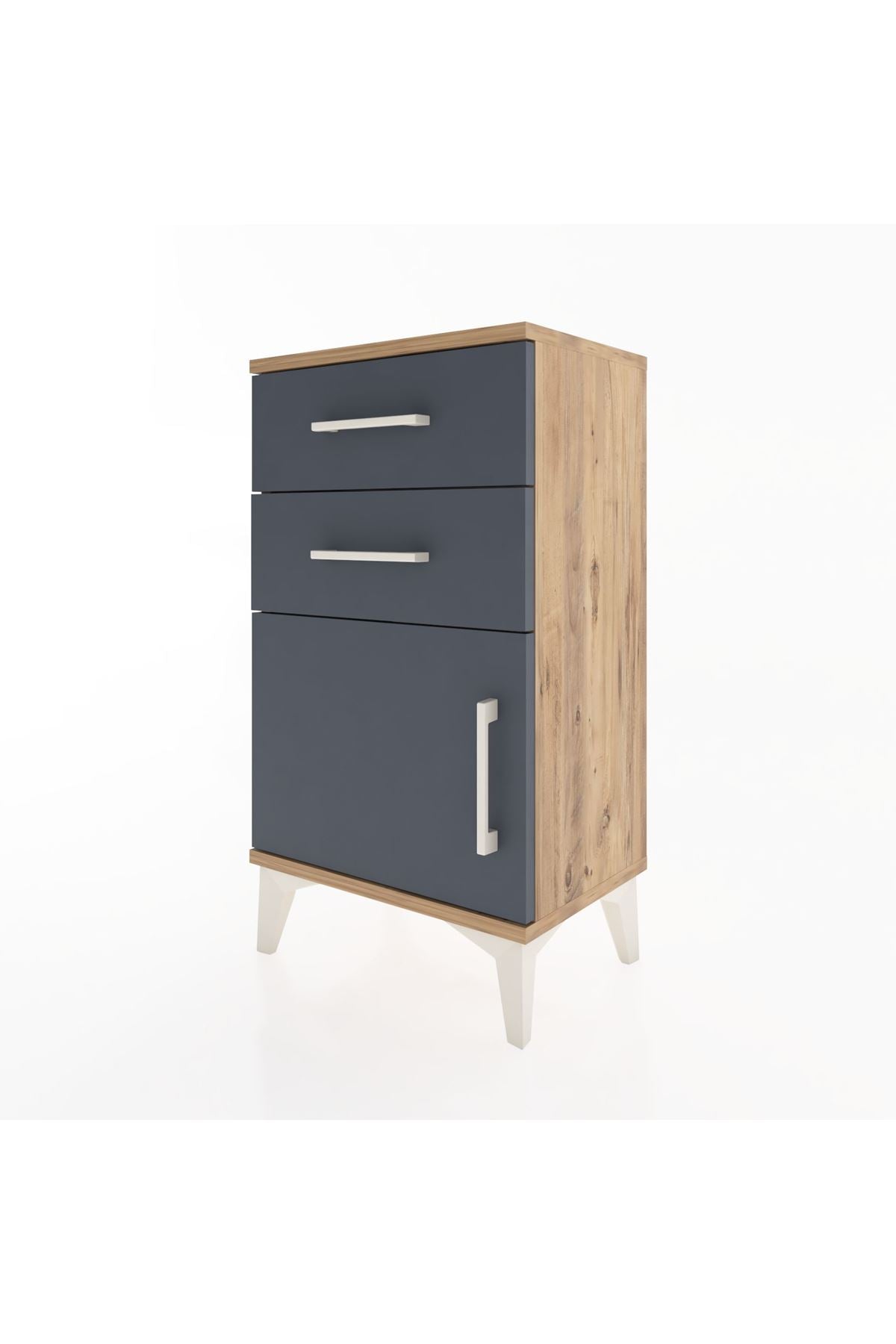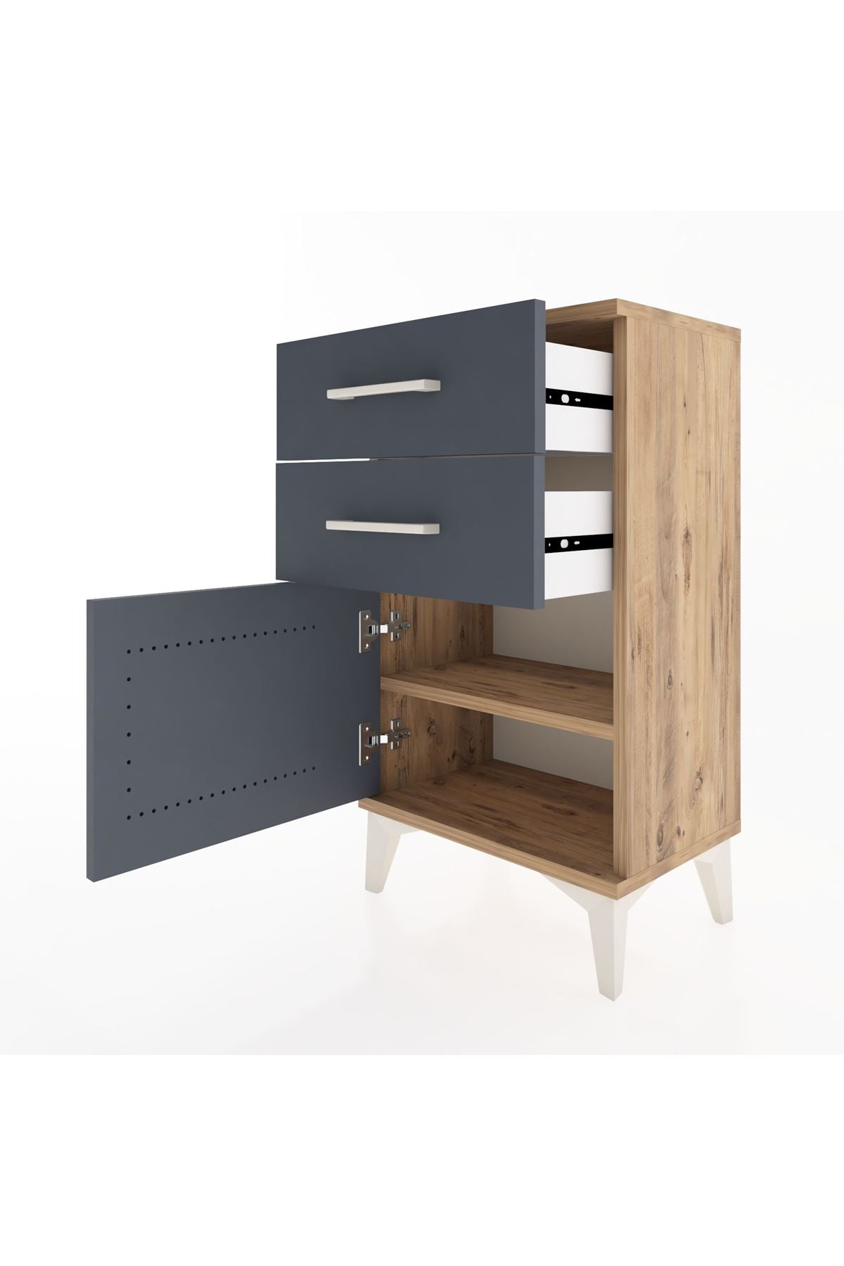 Arges Komodin Tek Raflı 2 Çekmeceli Tek Kapaklı 44x30x80 Çam-Antrasit