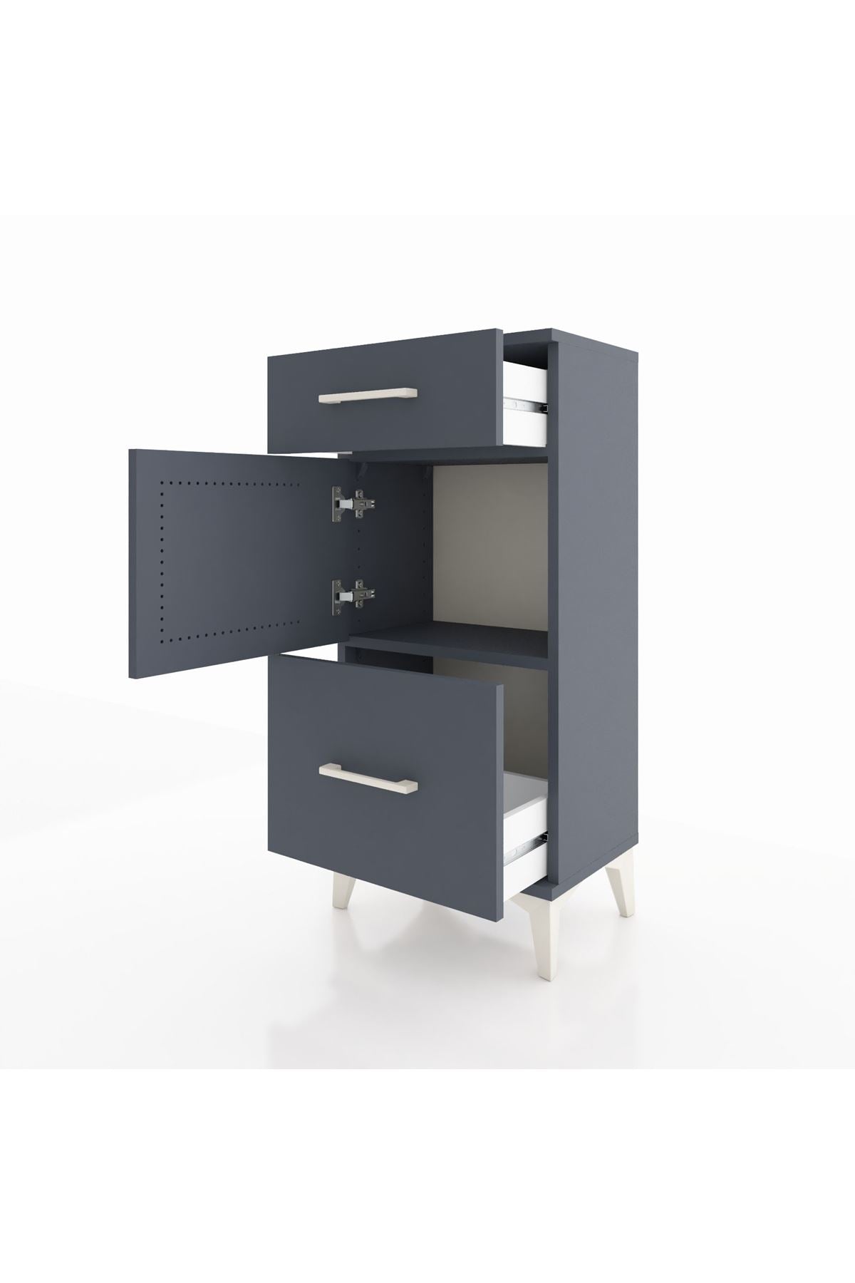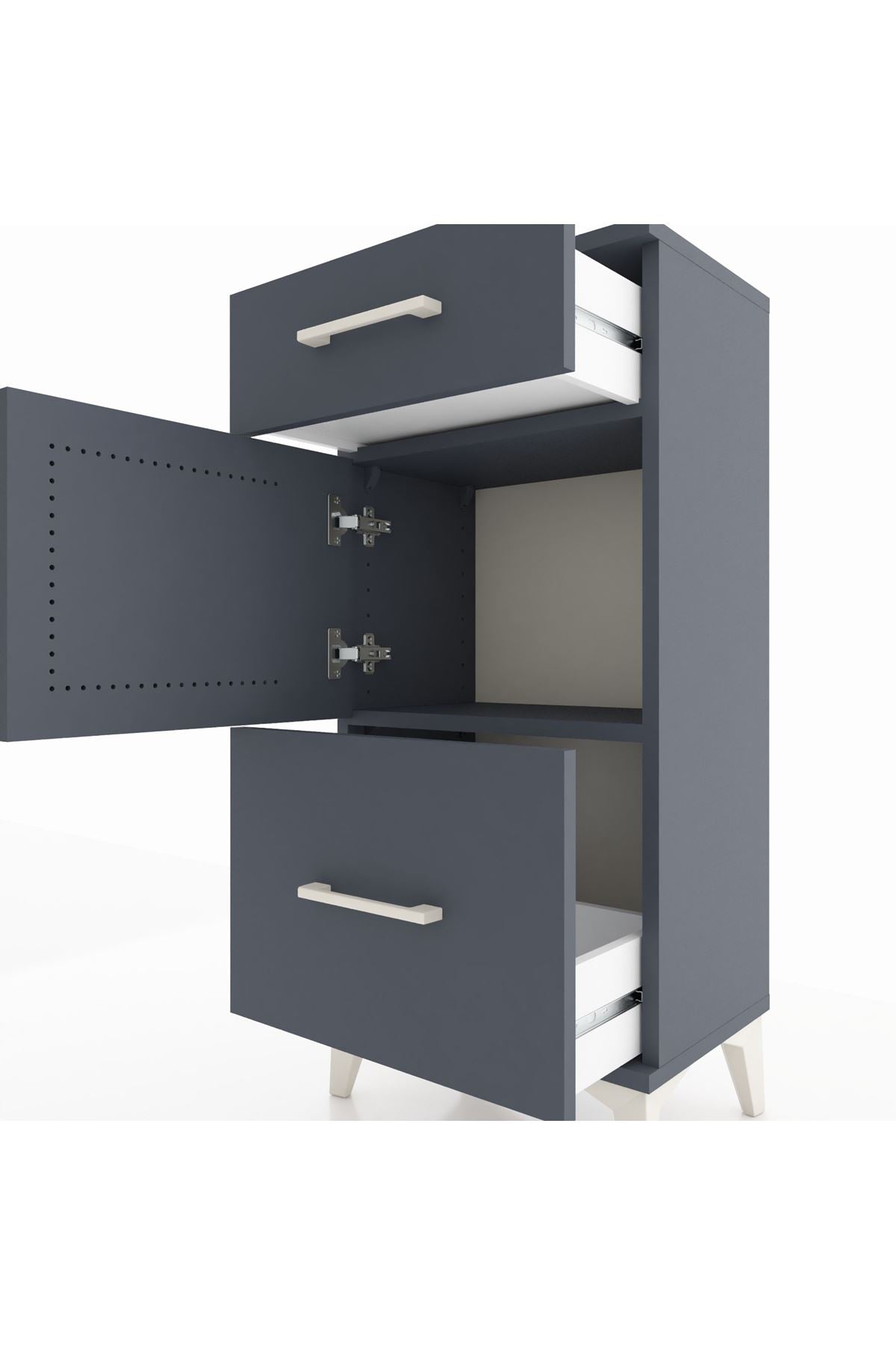 Arges Komodin Tek Raflı 2 Çekmeceli Tek Kapaklı 44x30x96 Antrasit-Antrasit