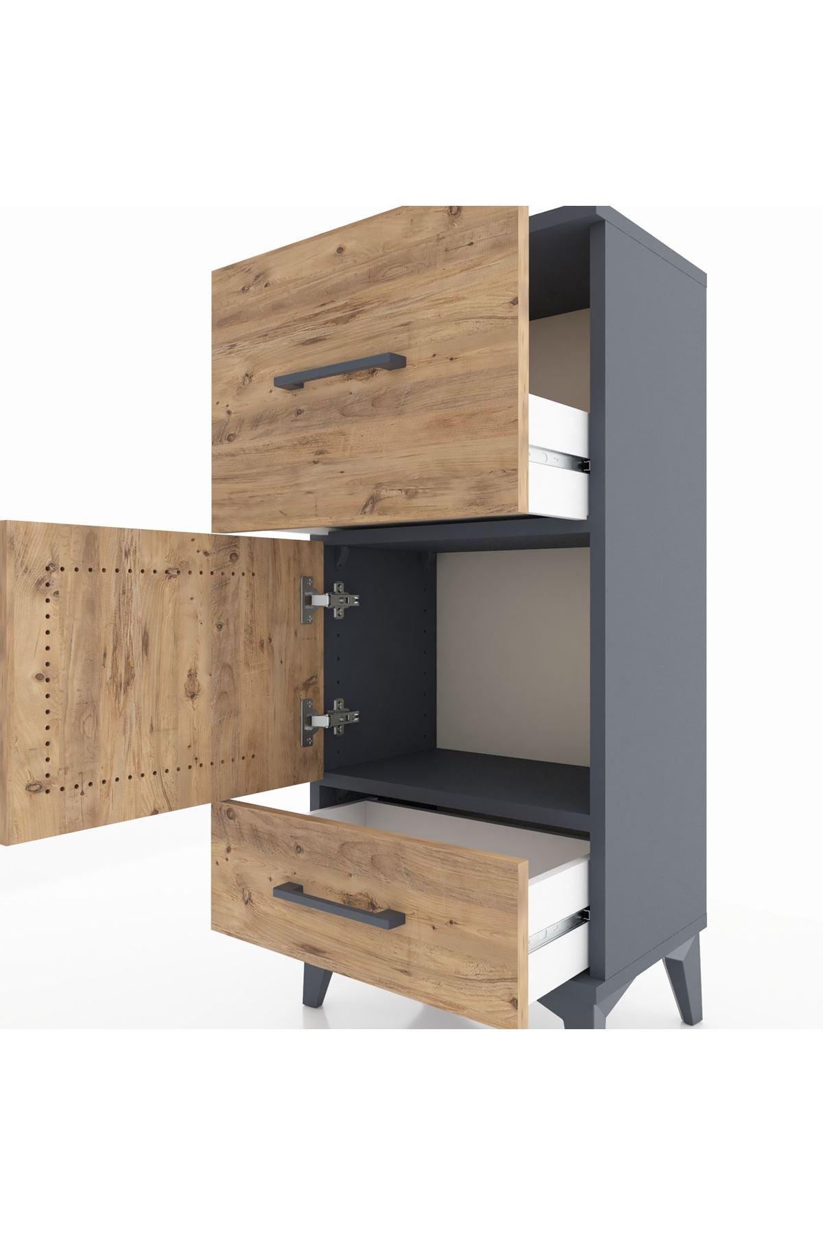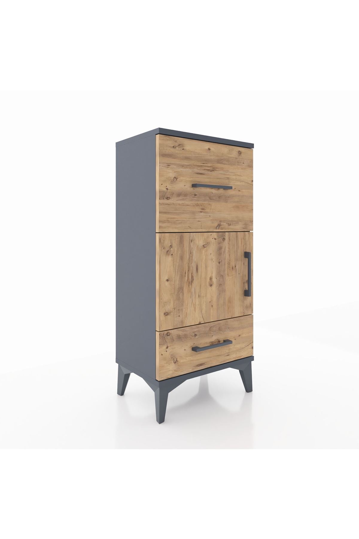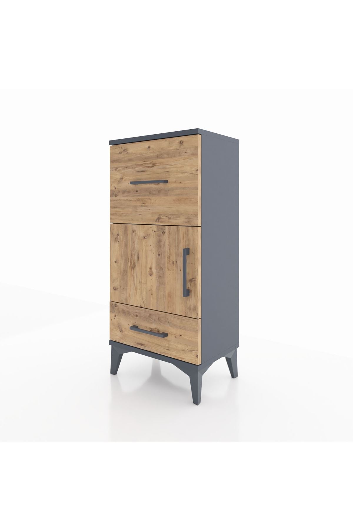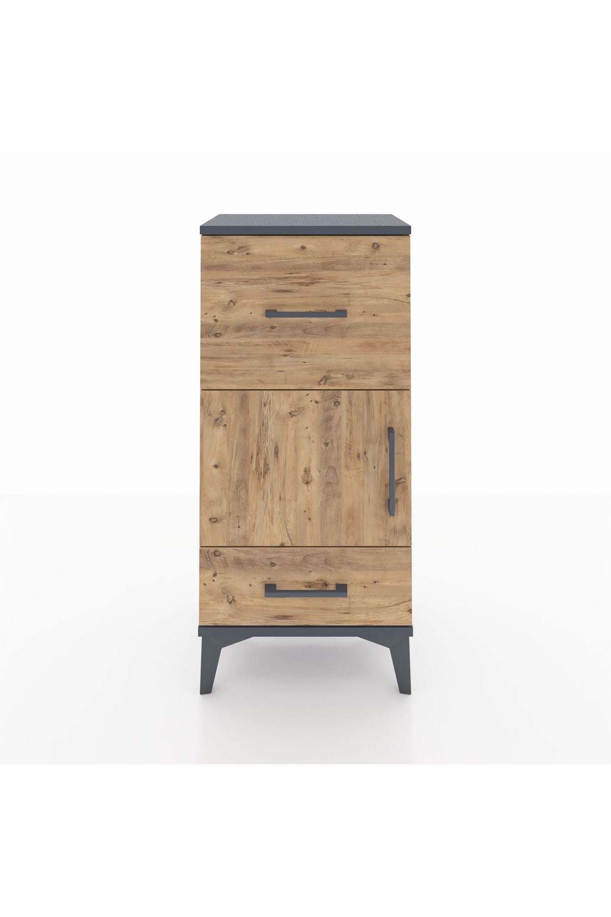 Arges Komodin Tek Raflı 2 Çekmeceli Tek Kapaklı 44x30x96 Antrasit-Çam