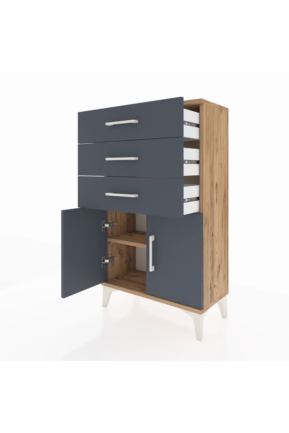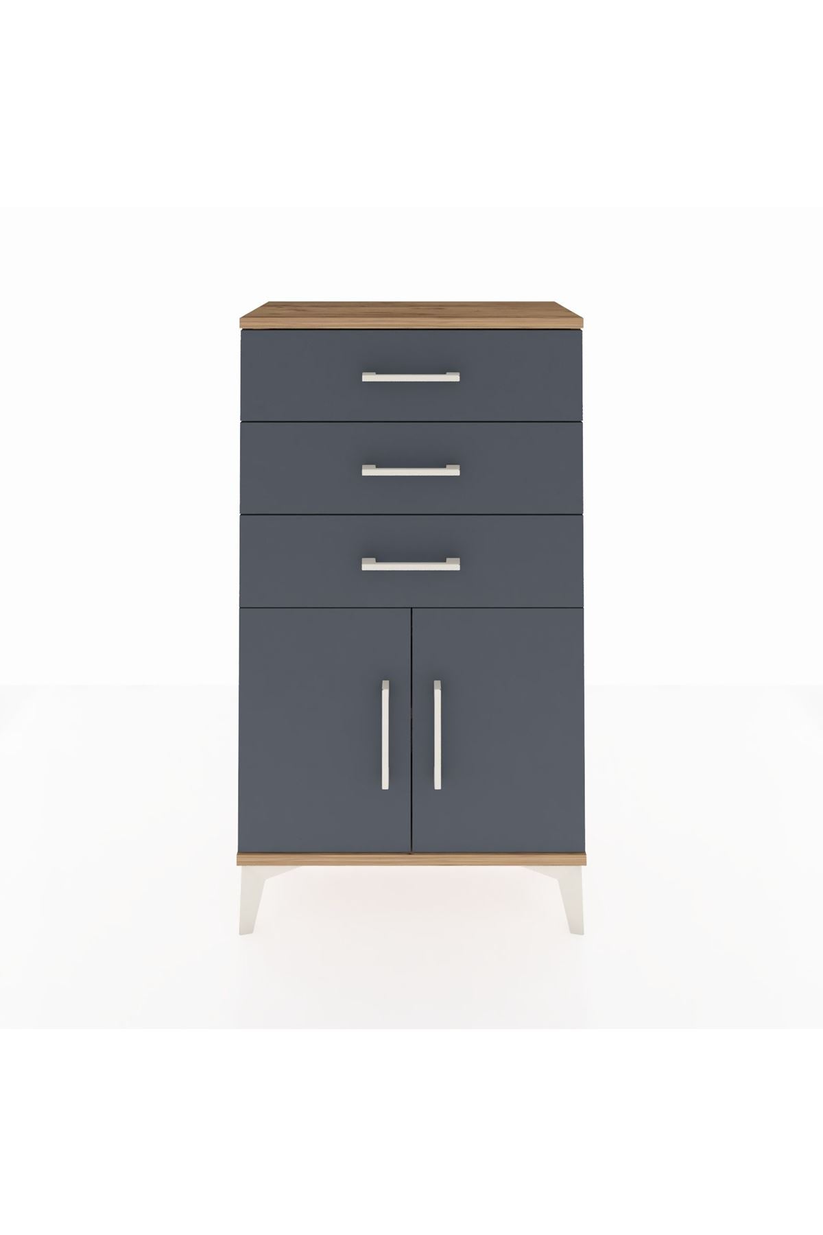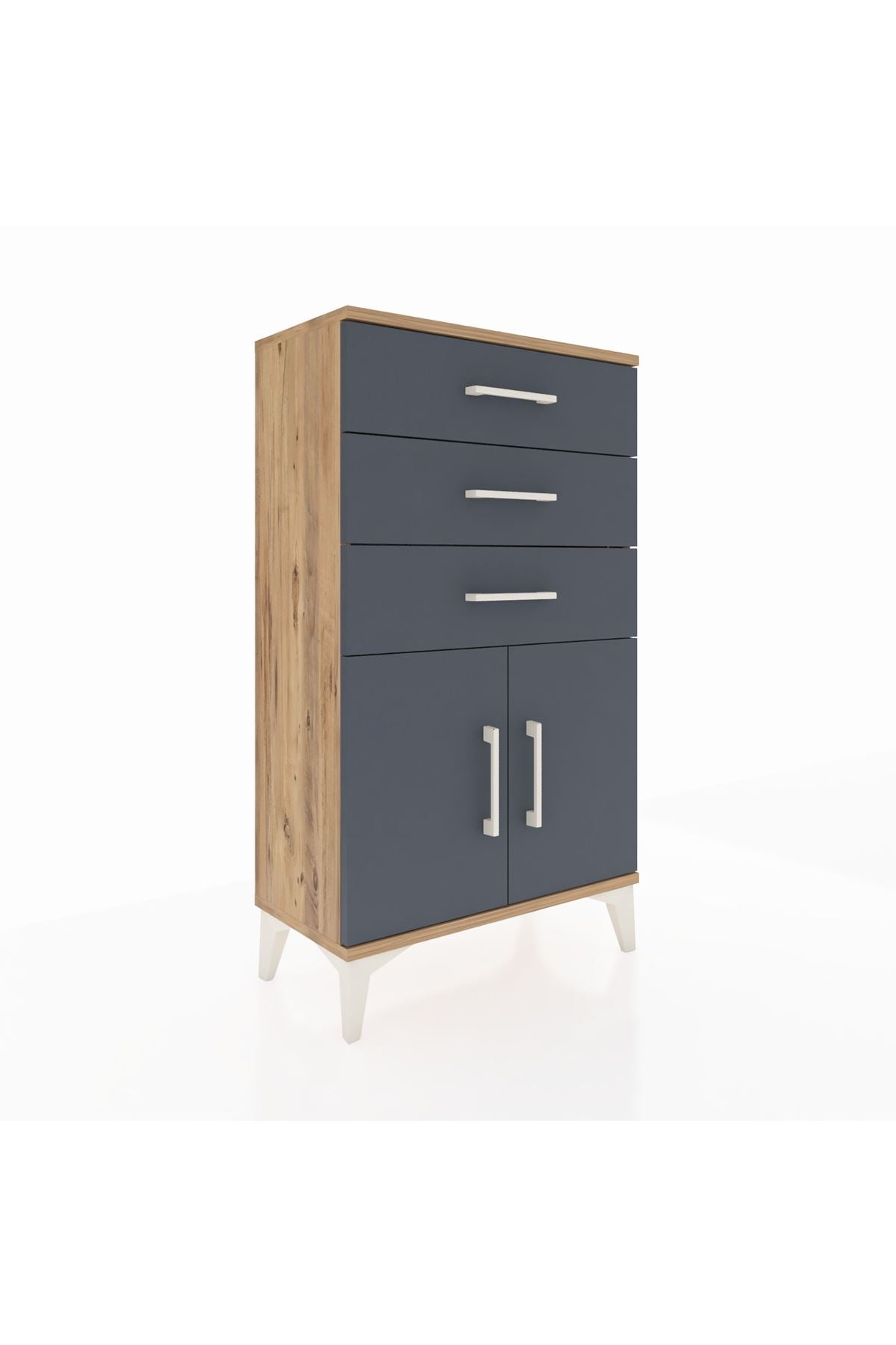 Arges Komodin Tek Raflı 3 Çekmeceli 2 Kapaklı 60x30x106 Çam-Antrasit