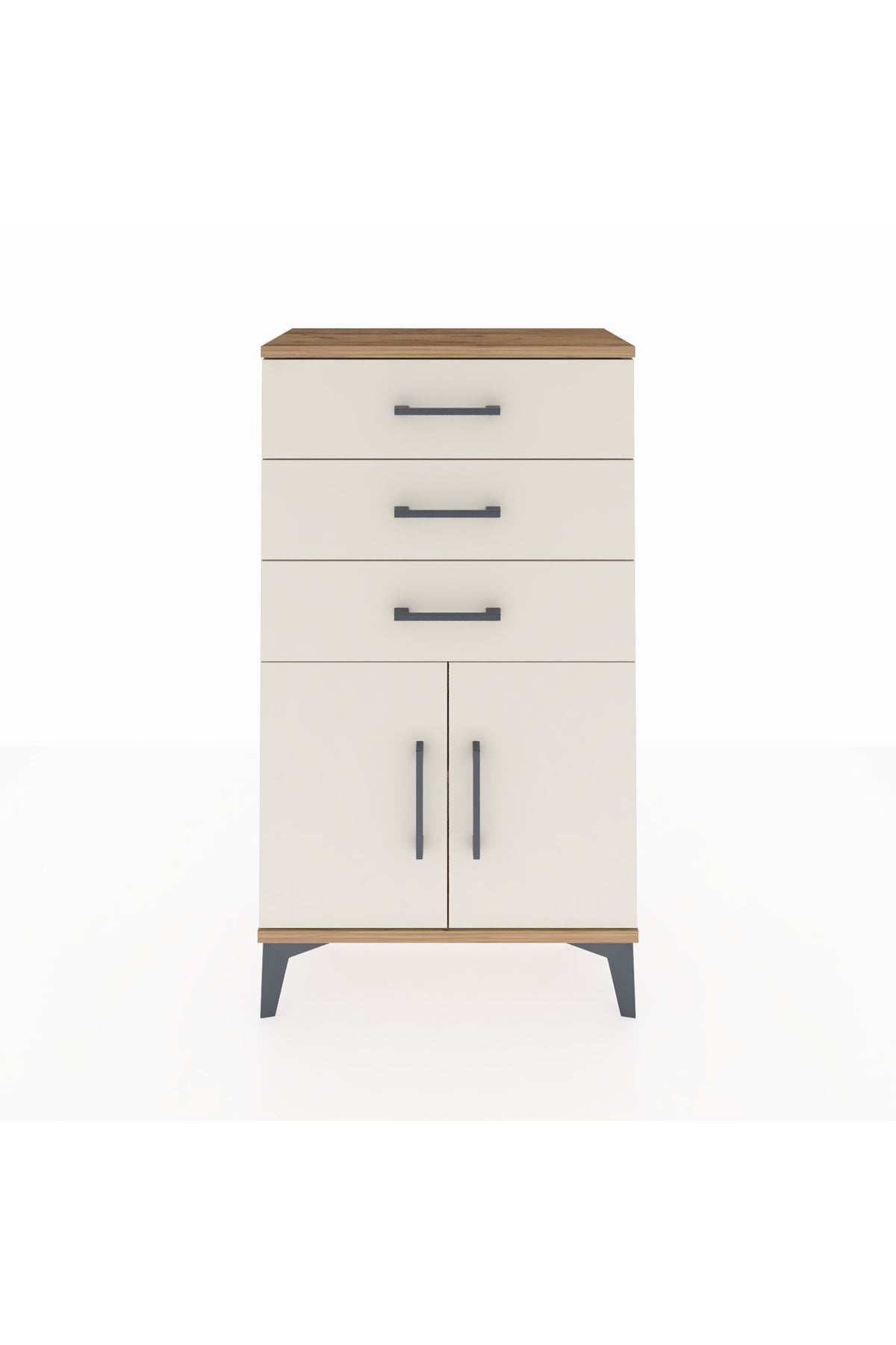 Arges Komodin Tek Raflı 3 Çekmeceli 2 Kapaklı 60x30x106 Çam-Aytaşı