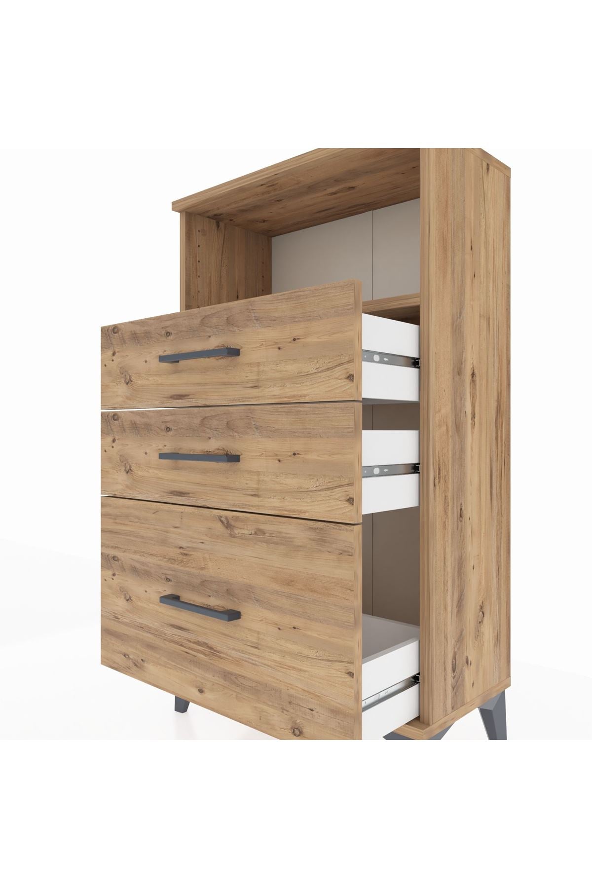 Arges Komodin Tek Raflı 3 Çekmeceli 60x30x106 Çam-Çam