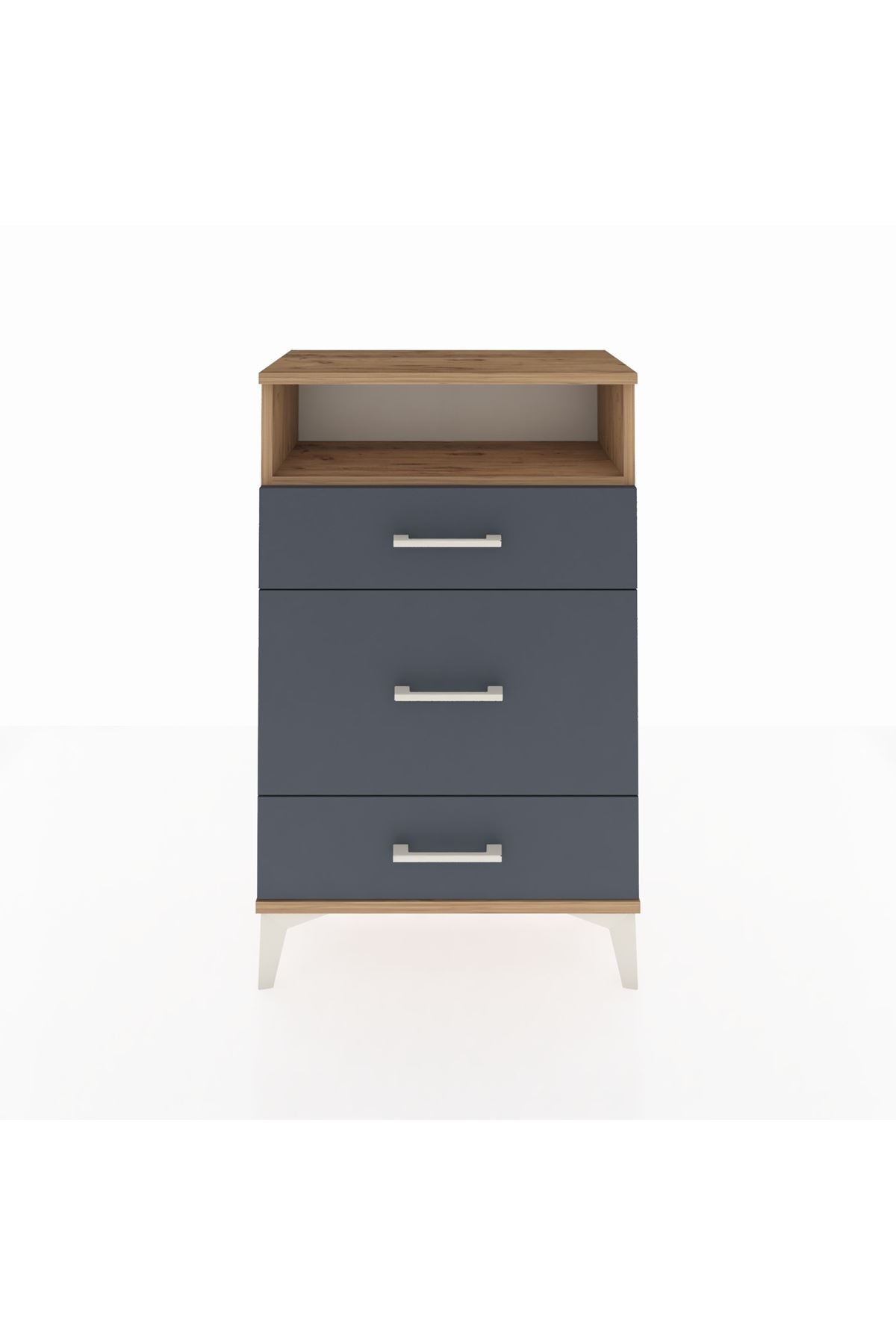 Arges Komodin Tek Raflı 3 Çekmeceli 60x30x96 Çam-Antrasit