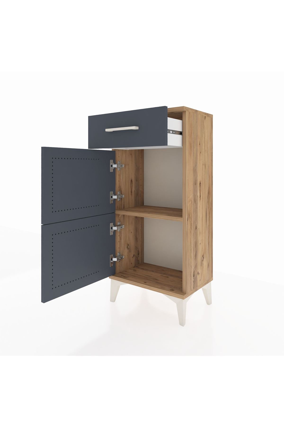 Arges Komodin Tek Raflı Tek Çekmeceli 2 Kapaklı 44x30x96 Çam-Antrasit