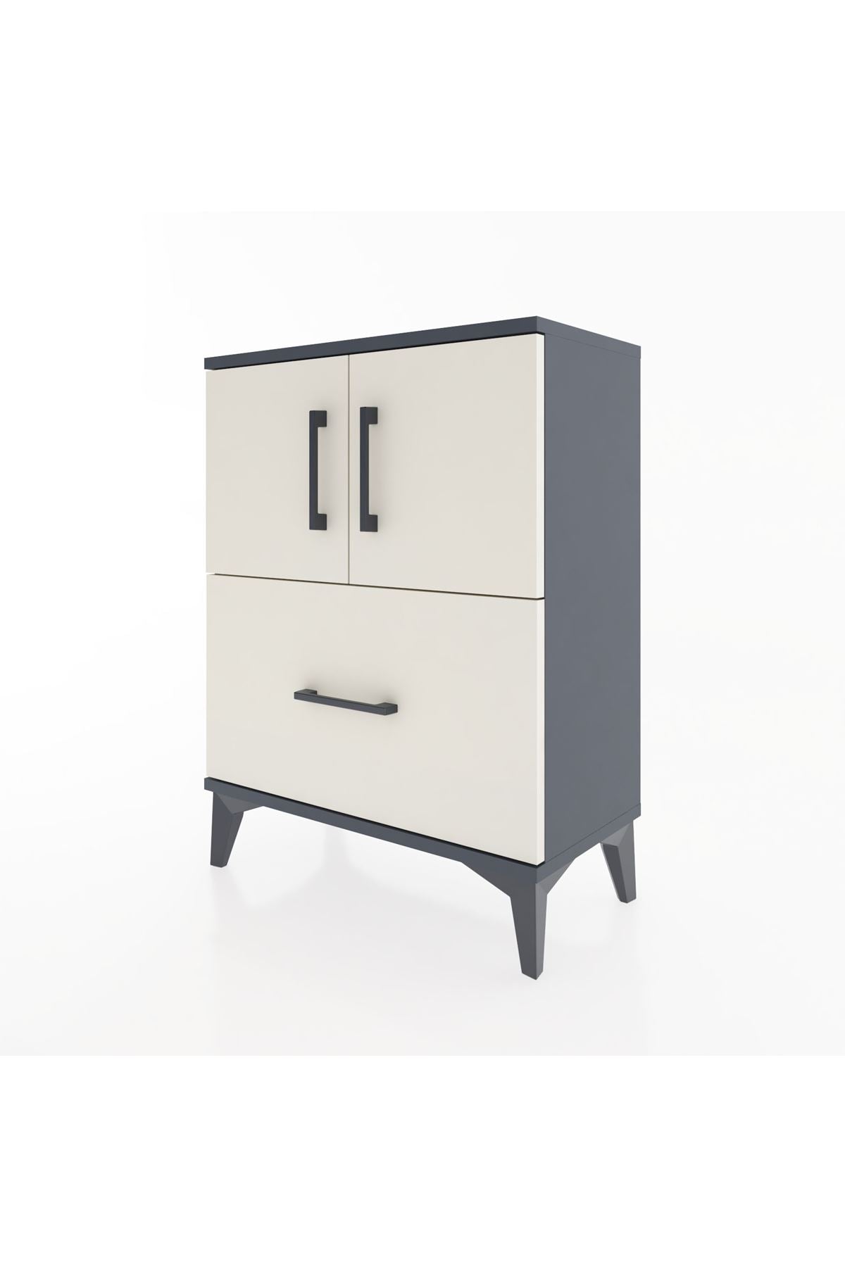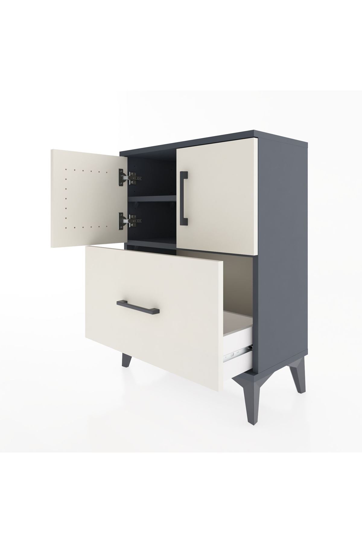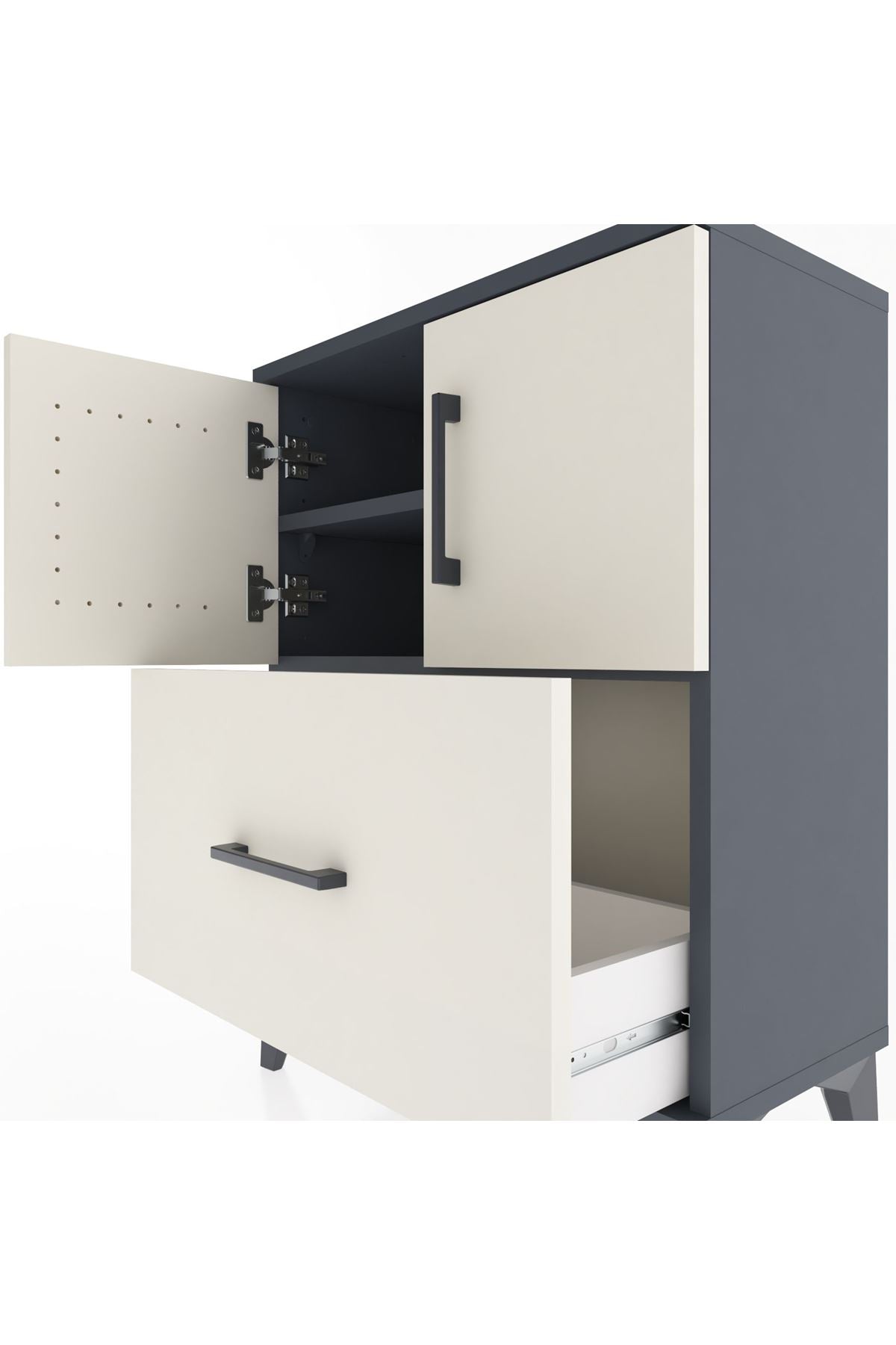 Arges Komodin Tek Raflı Tek Çekmeceli 2 Kapaklı 60x30x80 Antrasit-Aytaşı – Fonksiyonel ve Şık