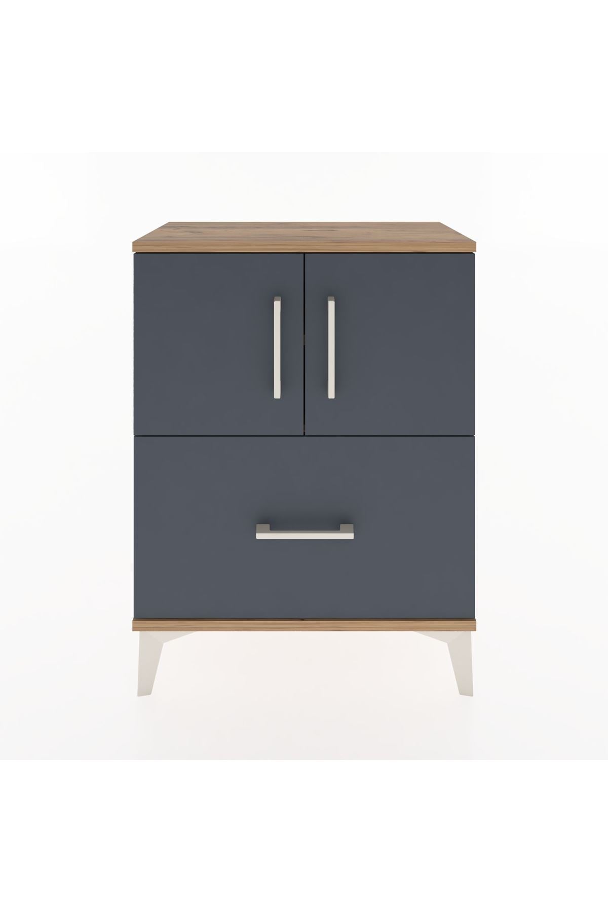 Arges Komodin Tek Raflı Tek Çekmeceli 2 Kapaklı 60x30x80 Çam-Antrasit