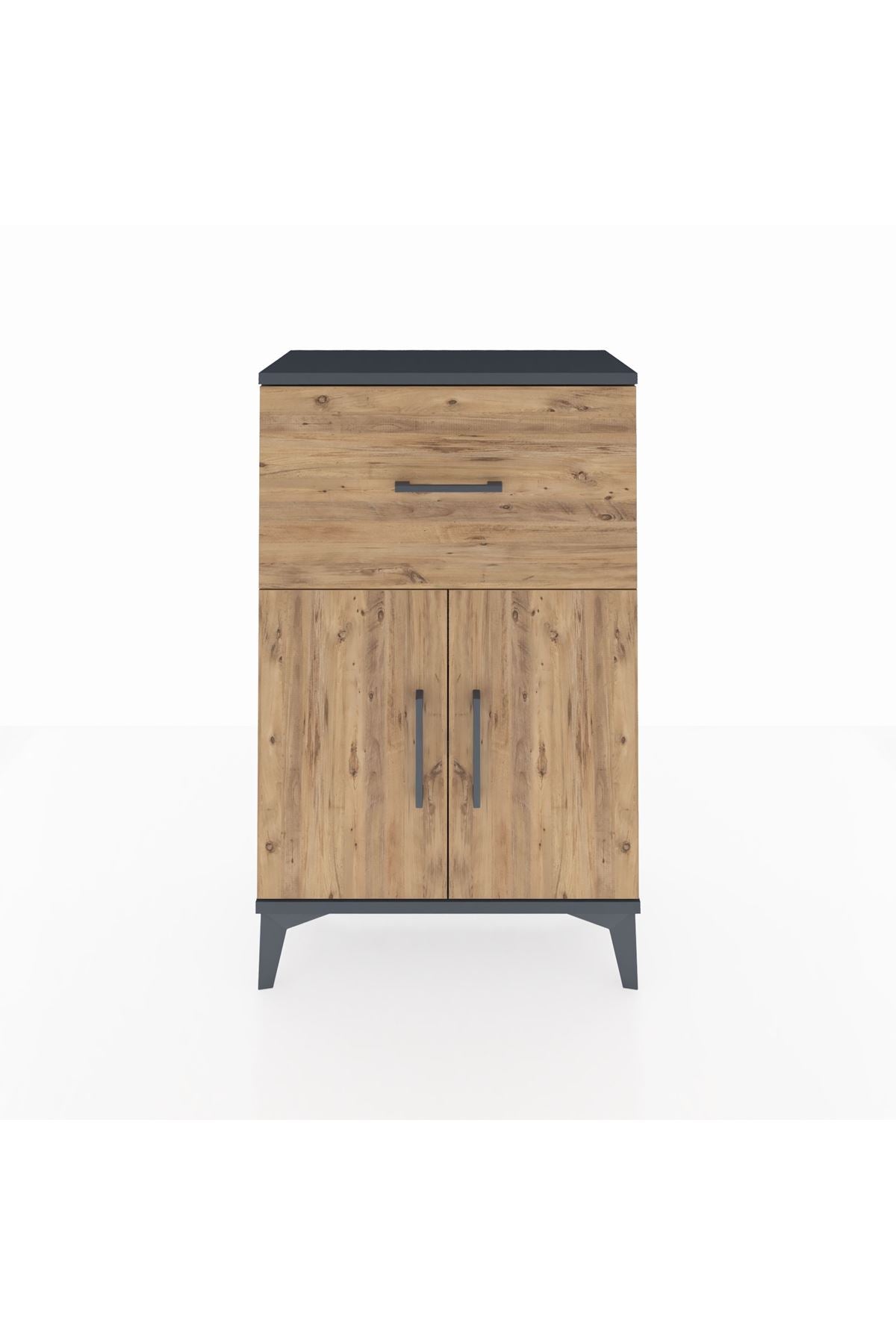 Arges Komodin Tek Raflı Tek Çekmeceli 2 Kapaklı 60x30x96 Antrasit-Çam