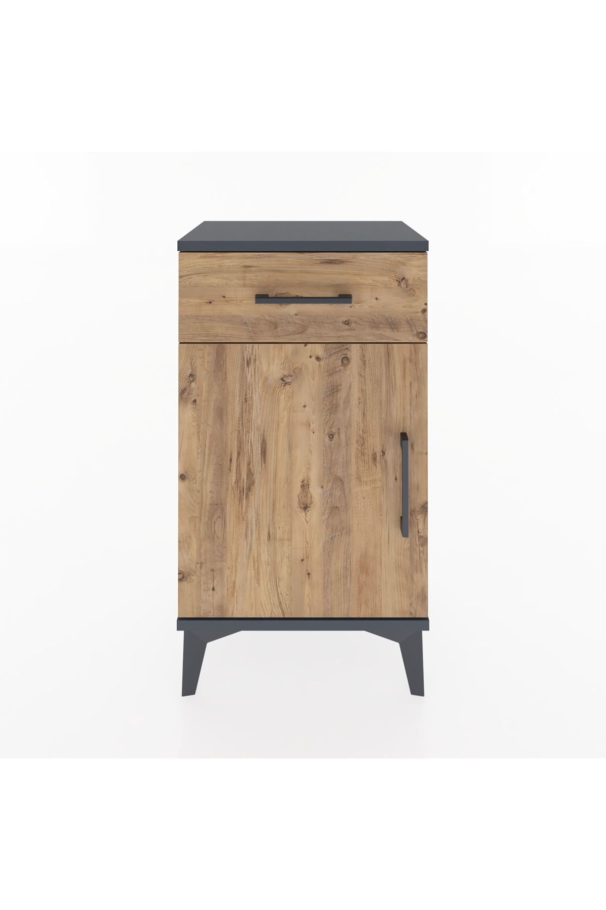 Arges Komodin Tek Raflı Tek Çekmeceli Tek Kapaklı 44x30x80 Antrasit-Çam