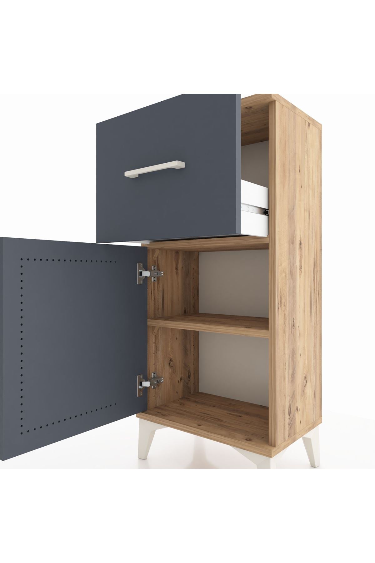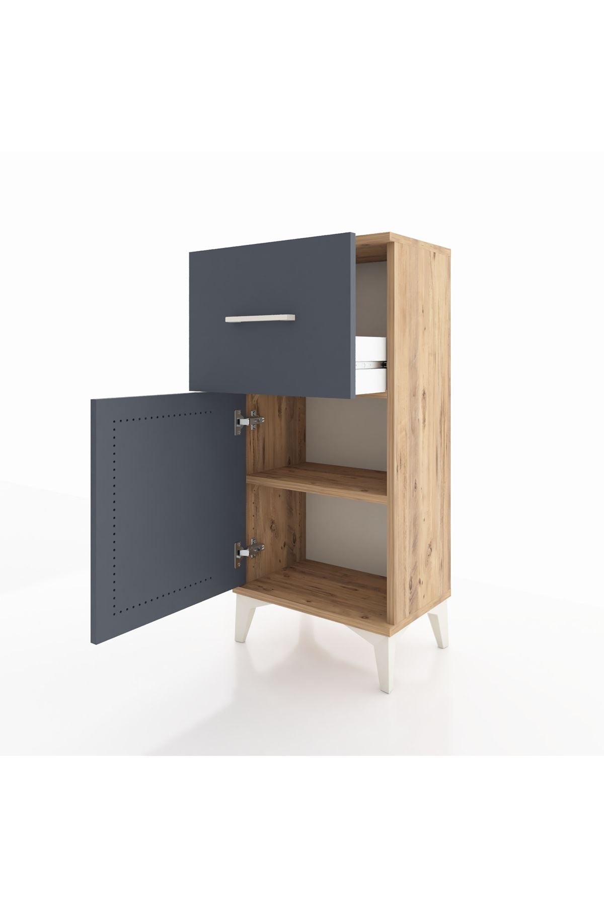 Arges Komodin Tek Raflı Tek Çekmeceli Tek Kapaklı 44x30x96 Çam-Antrasit