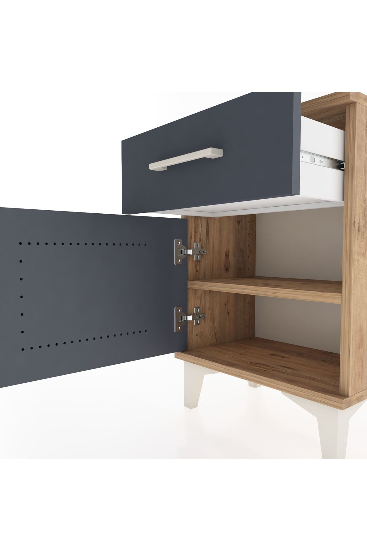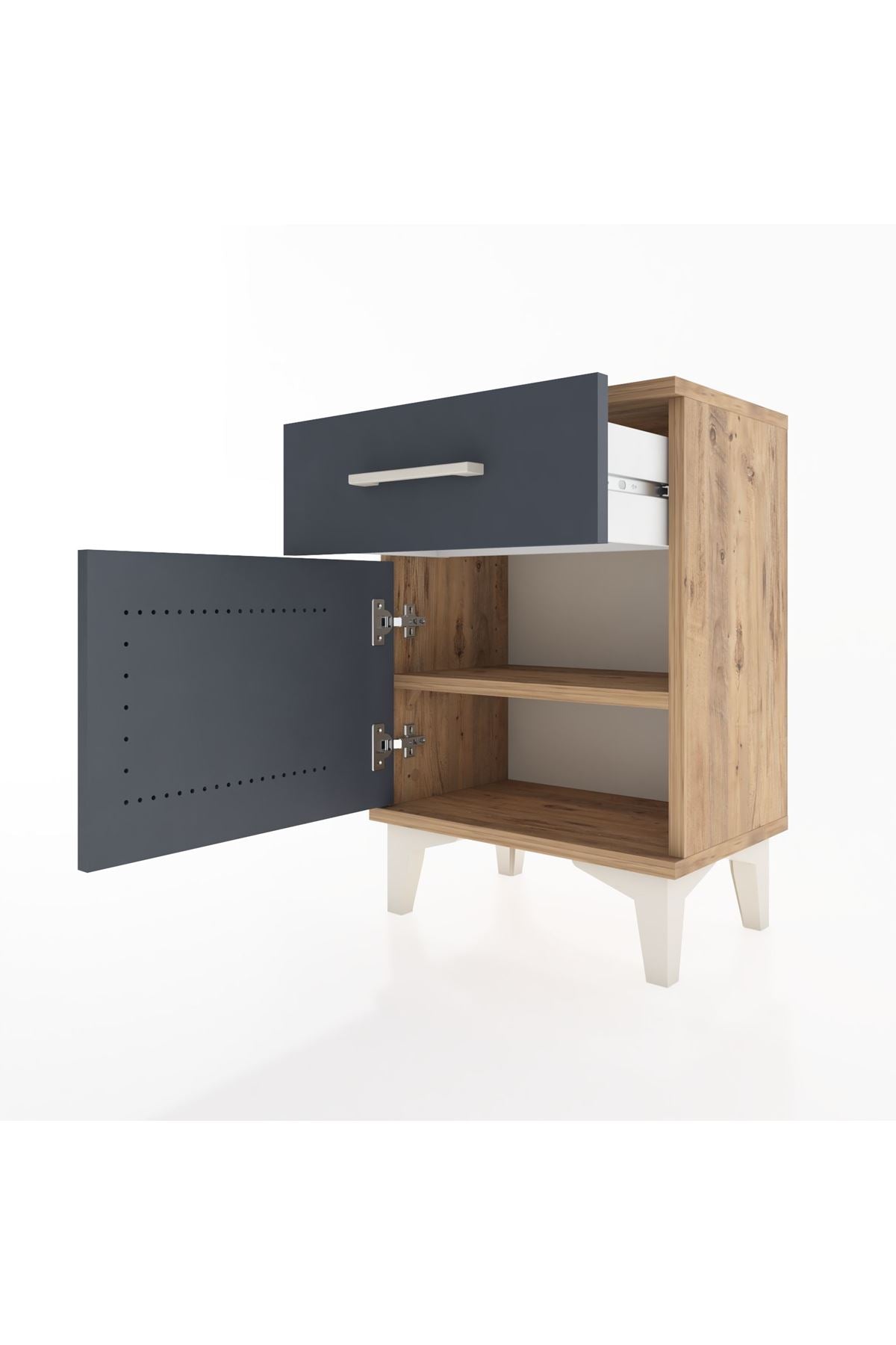 Arges Komodin Tek Raflı Tek Kapaklı 44x30x64 Çam-Antrasit